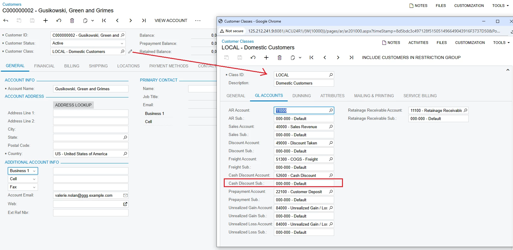 On the Business Accounts screen => When you click on "EXTEND AS CUSTOMER" => the system will switch to the Customer screen => On the Customer screen, select "Customer Class" and note that "Cash Discount Sub." on Customer Classes must be set up first.