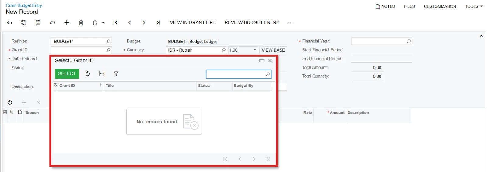 Hi, i want to create budget for Grant Budget Entry. I am already create the Grant and activate, but when i try to insert the budget, there is not list of the Grant ID. Can somebody help me to solve this. I really appreciate, thank you.