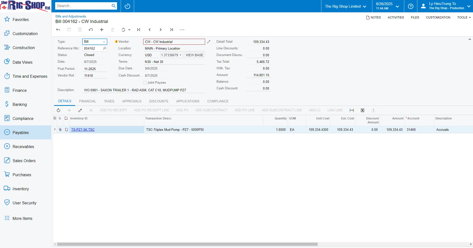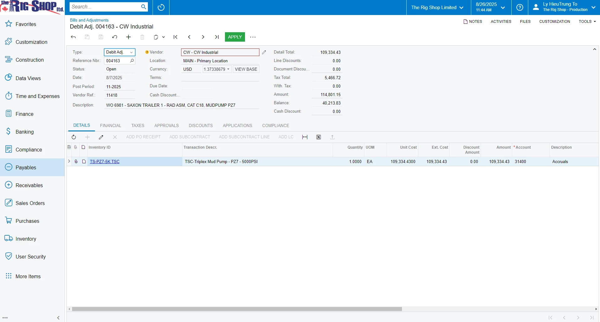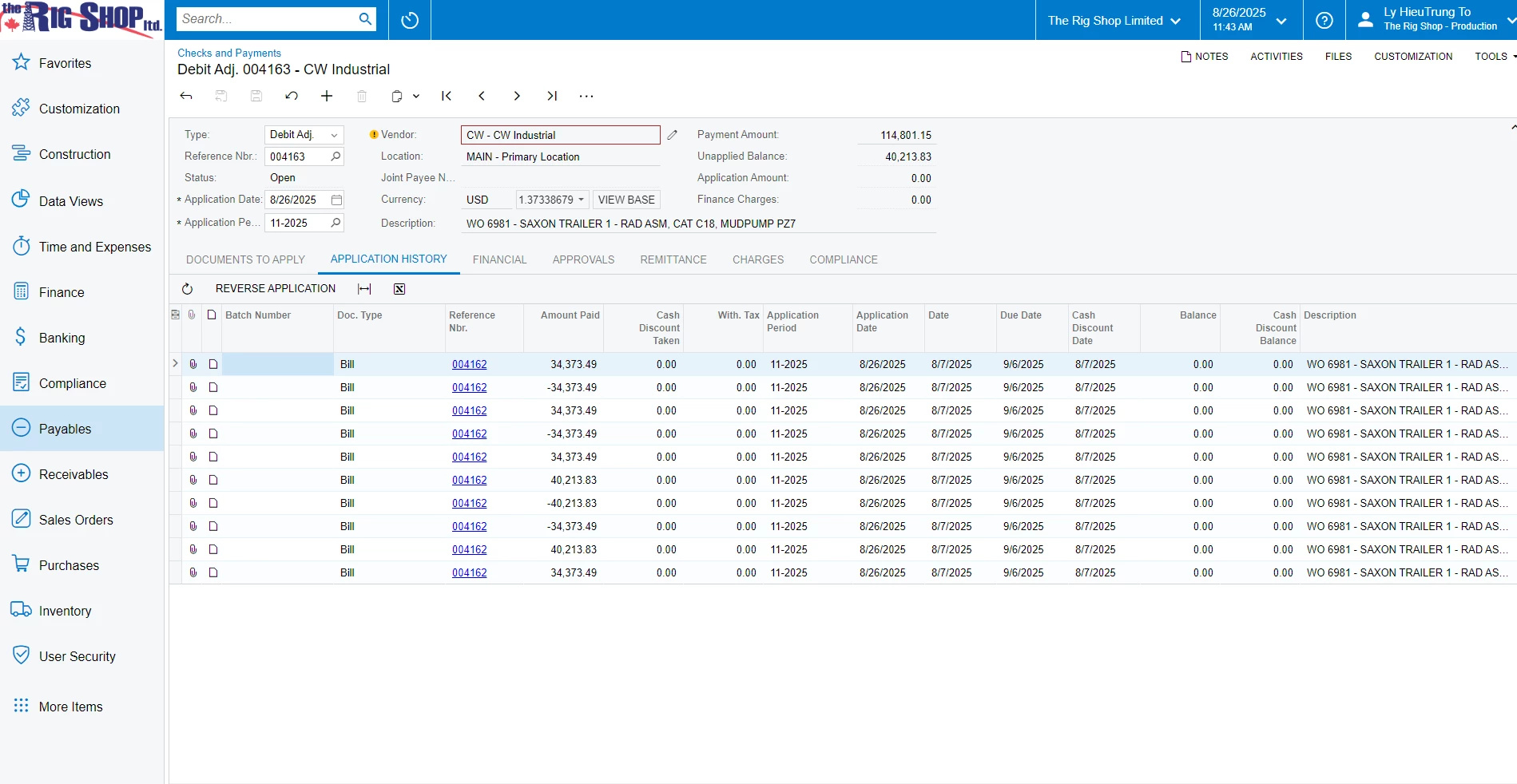 The system will then show an additional line where the Bill was unapplied from the Prepayment.