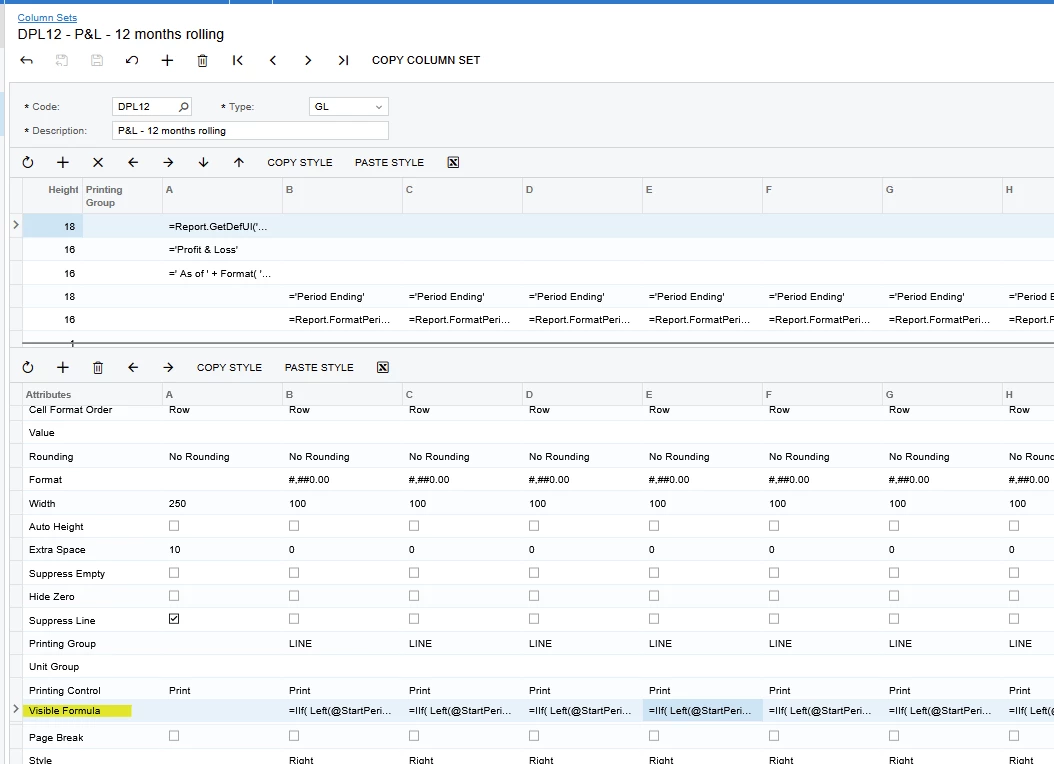 Outcome:  In my case, the IIf statement required to consider *any* range of periods the user may enter was too large for the size limit on Visible Formula cell of Column Sets.