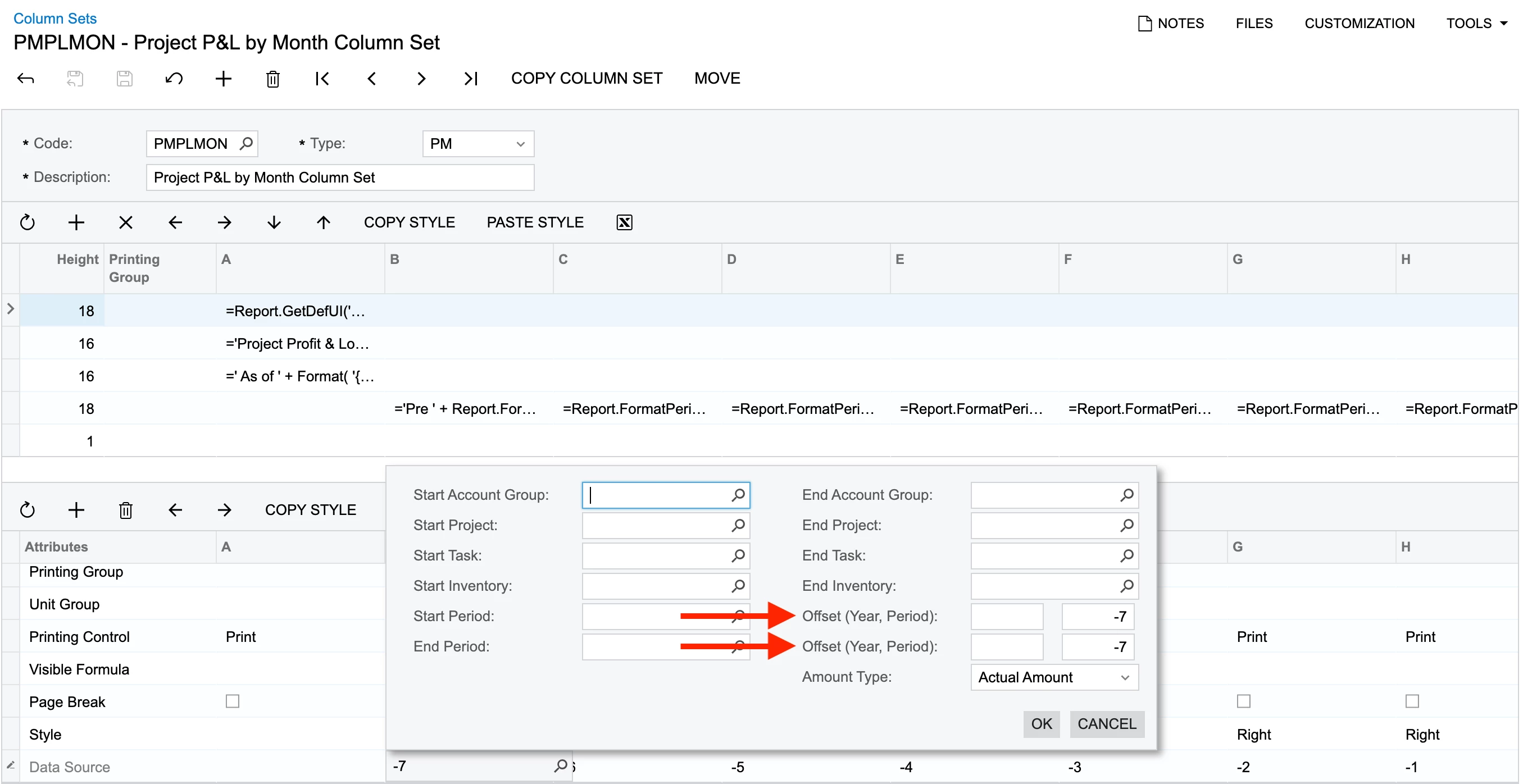 How to Make ARM Column Set Values Dynamic Based on From/To Period Range?