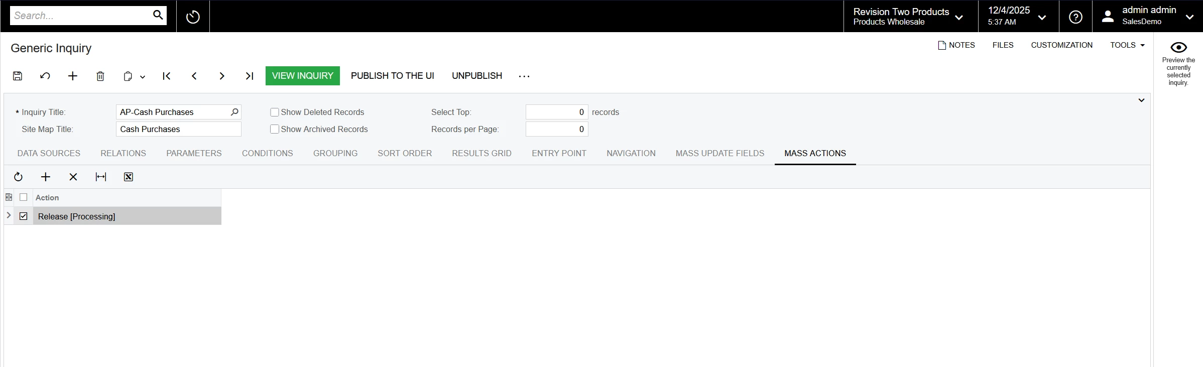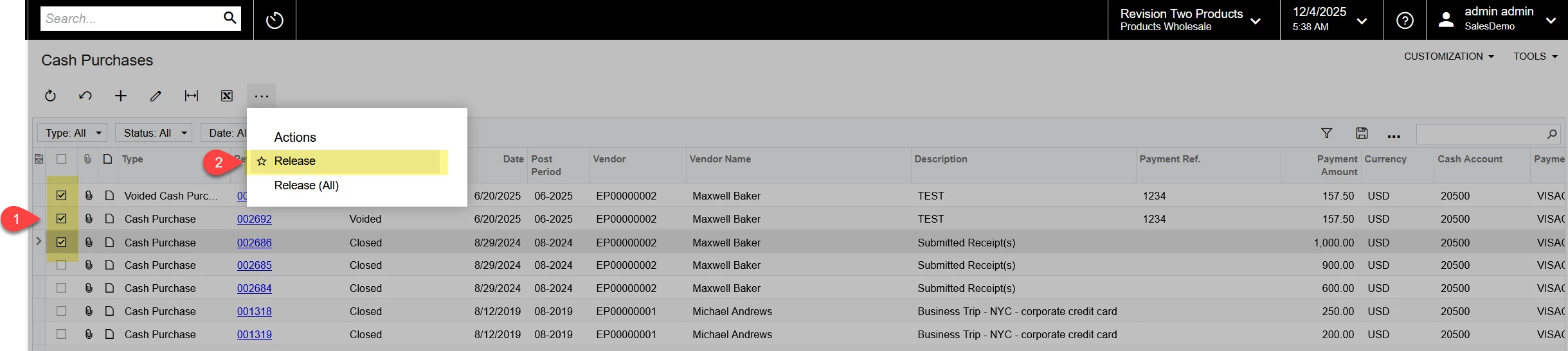Instead of going to each cash purchase and releasing one by one , is it possible to release several cash purchases at once ?