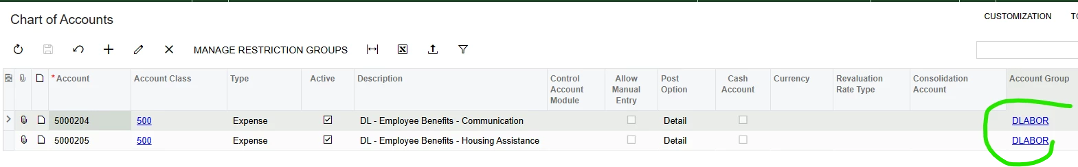 - Added the fixed asset clearing account to an asset type account group