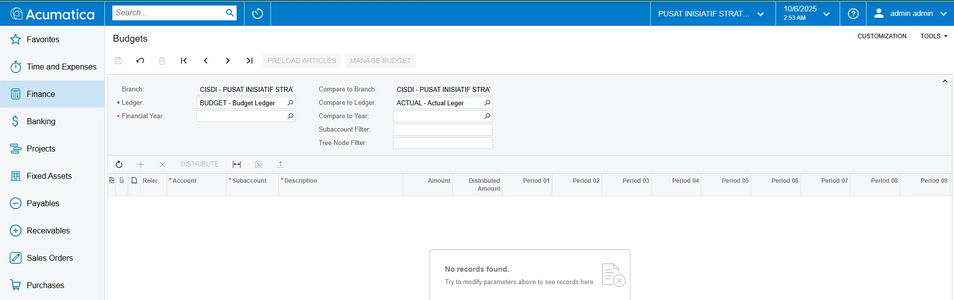 Hii, i wan to ask, why i can not to create a new budget in Acumatica? There is any step that i miss before cerate a budget in Finance Module.