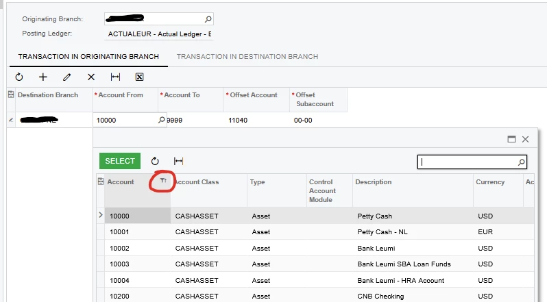 I have a requirement to transfer the balance of the cash account in one company to a cash account in another company. For that, when Im trying to create the Inter Branch mapping the system does not show me the offset account in the search. What could be the reason ?
