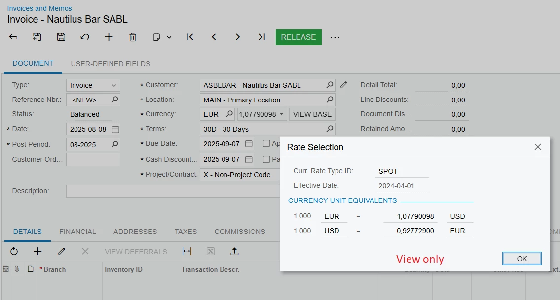 I would like to prevent users from changing exchange rates on AR invoices and credit memos. What is the name of the container element that needs to be made view-only? I’m talking specifically about this widget, they can open it but not change anything: