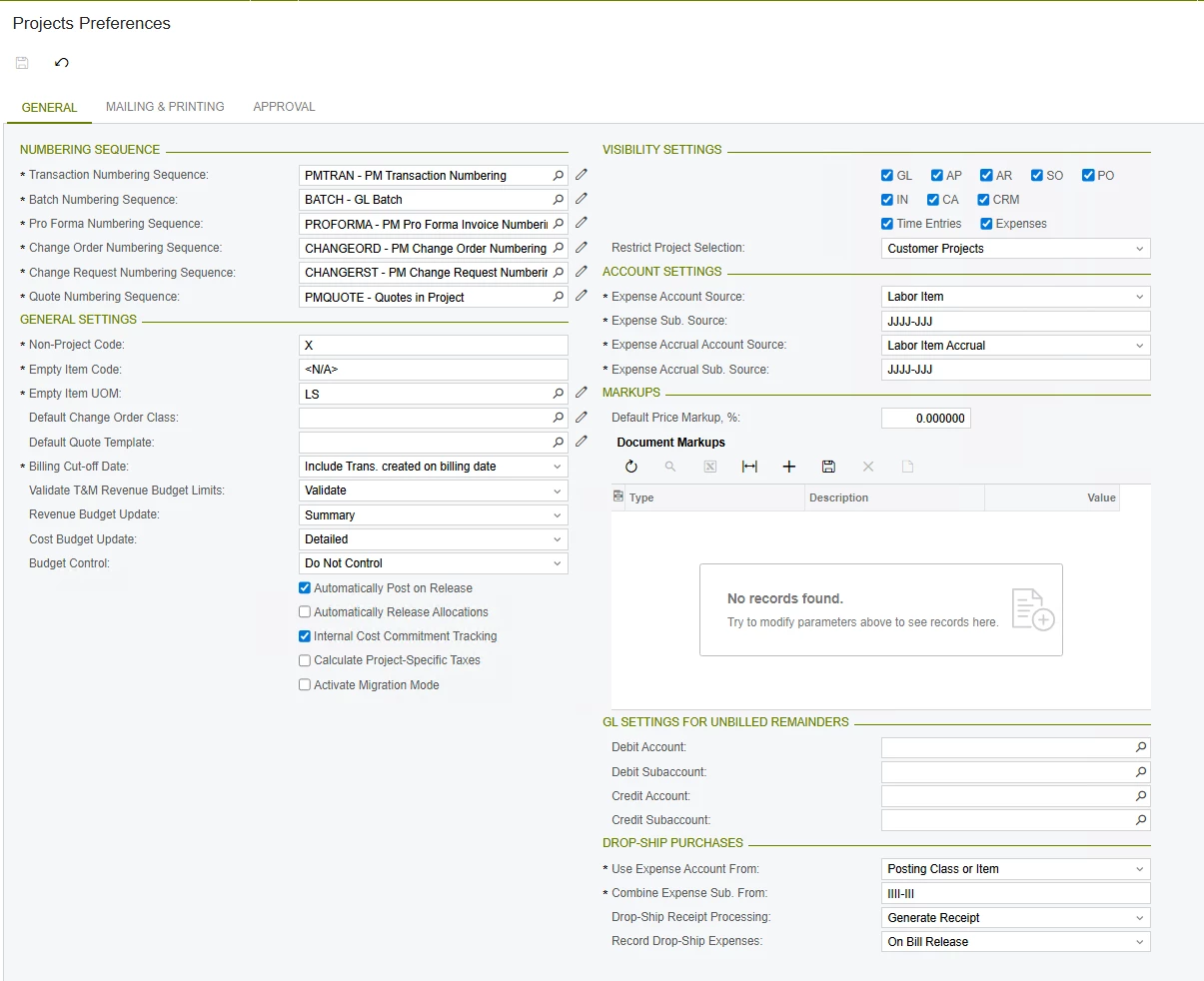For example, in this project the tasks were assigned to it and the correct GLs and subaccounts were correctly populated: