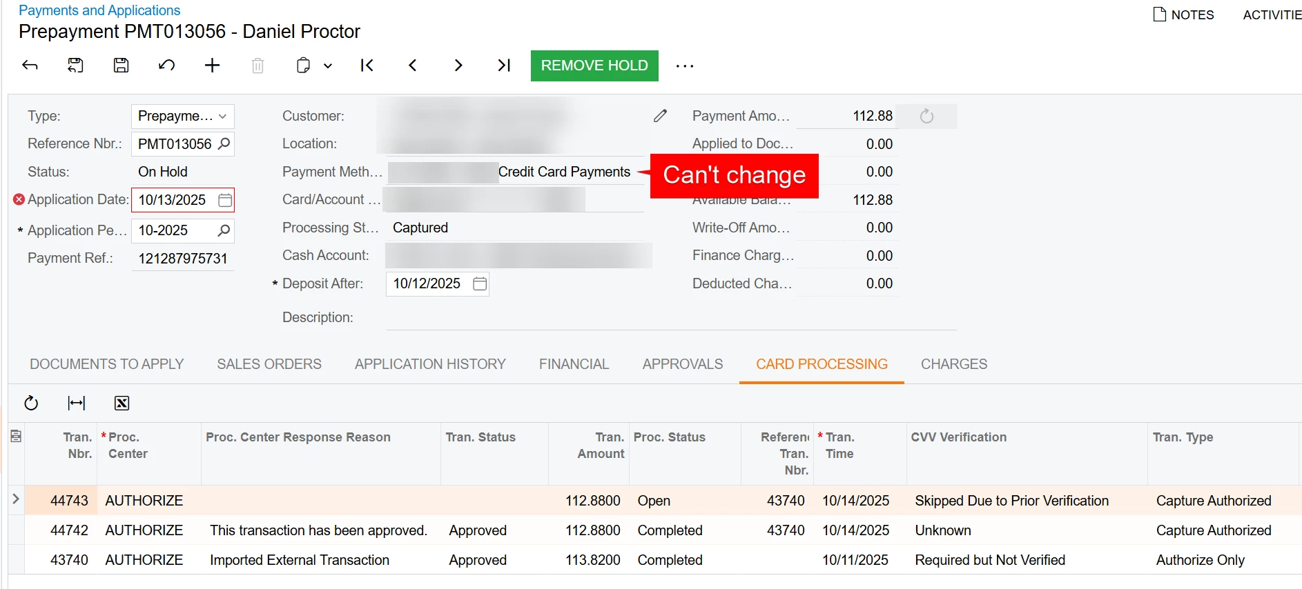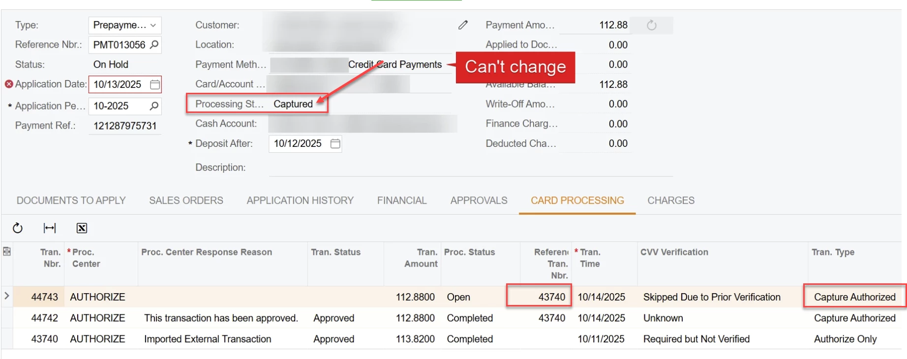 We’re on Acumatica 24R1, so official support won’t assist. Furthermore, the transactions originated in Authorize.net, and the Acumatica team says they no longer support auth.net.