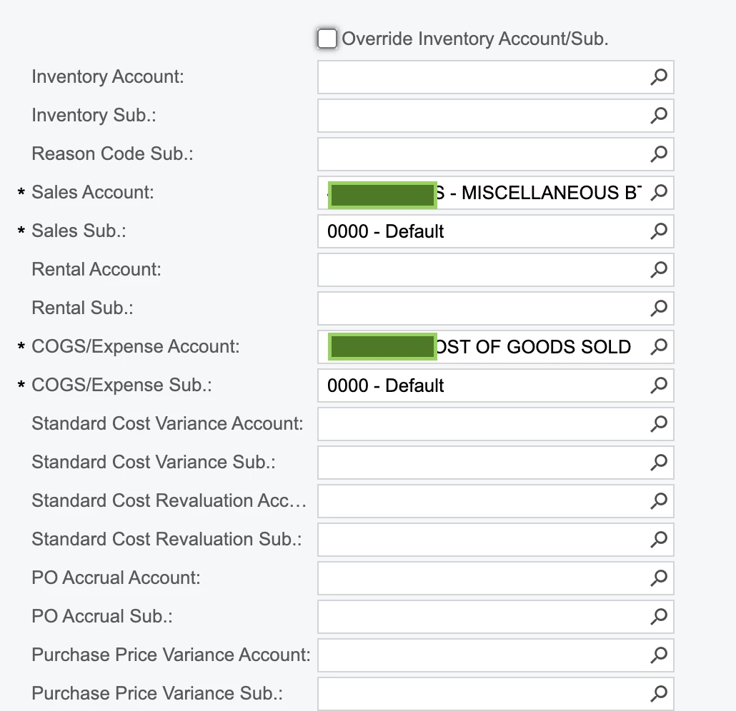 However, every time I make an SO with that class, the Account does not pull over from the warehouse, and I get the following Error: 'SalesAcctID' cannot be empty.