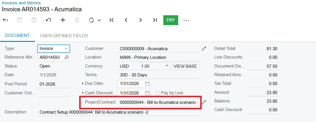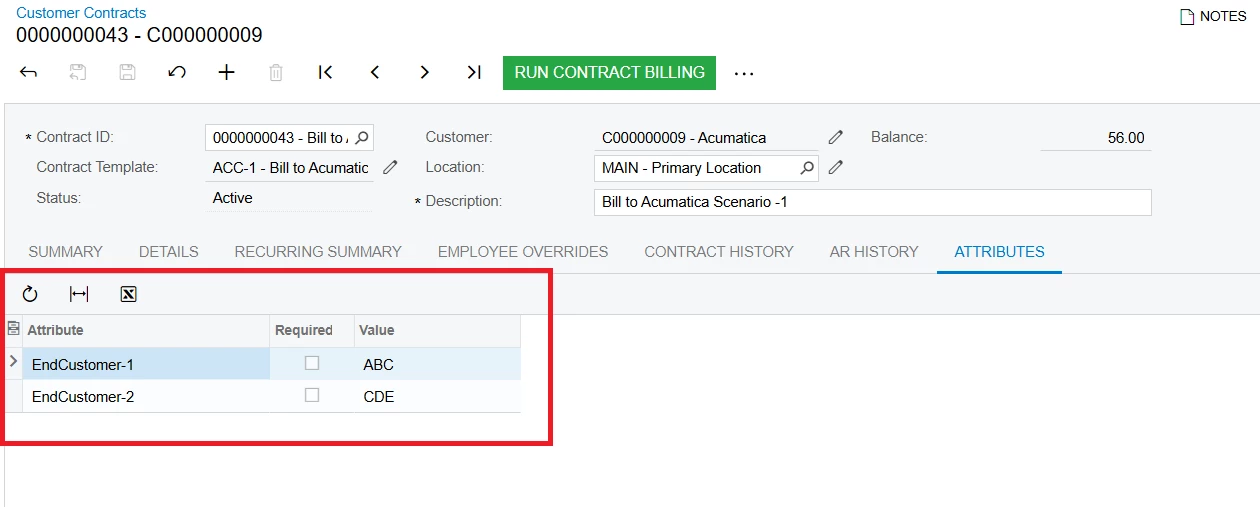 Specifically, when a Contract ID is selected on the invoice, can the system automatically pull the corresponding Attribute values from the Customer Contract and populate them into UDFs on the invoice?