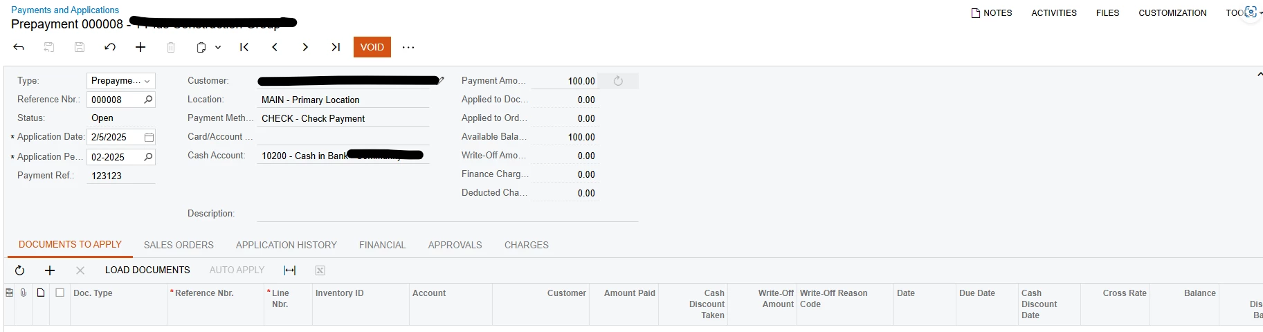 Running that action will result in generation of the Voided Payment record, which will update your Customer’s balance and General Ledger after releasing and basically cancel the changes processed by the Prepayment record.