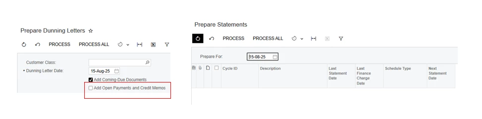 Another thing is that, in the screen Prepare Dunning Letter there is an option to exclude Credit Memos. Is there a way to do this for Statements without doing customization? Thank you.