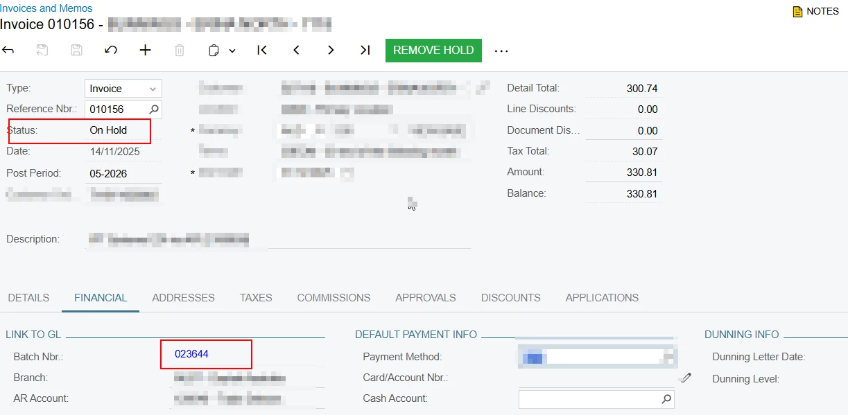 Then I performed the “Hold” action to check what will happen and now I am unable even to Remove Hold the invoice.