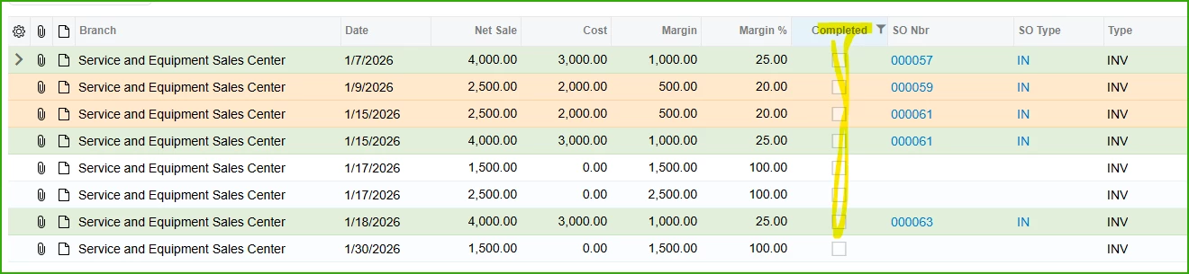 In all the Sales Profitability Reports there are two flags to choose: Released Transactions Only and Completed Transactions Only.