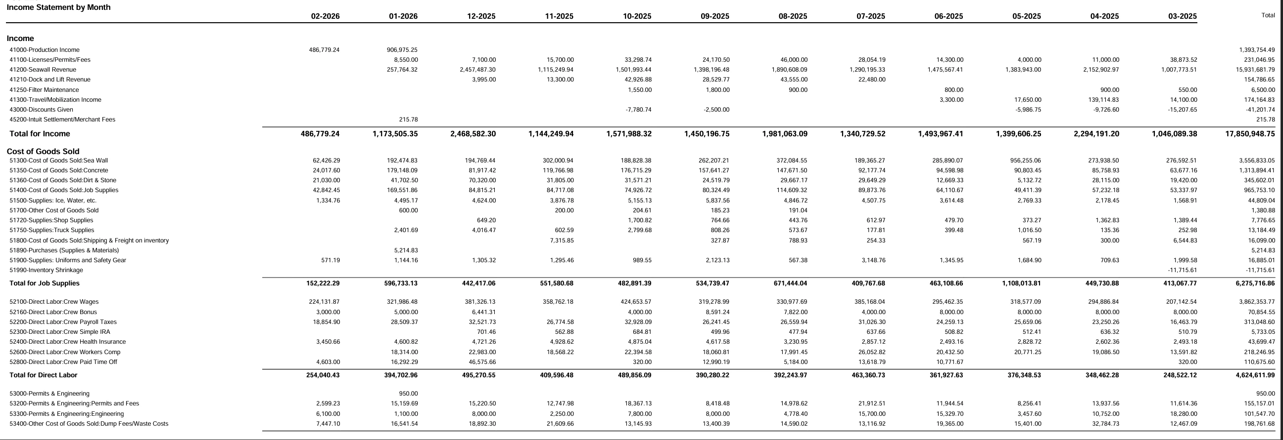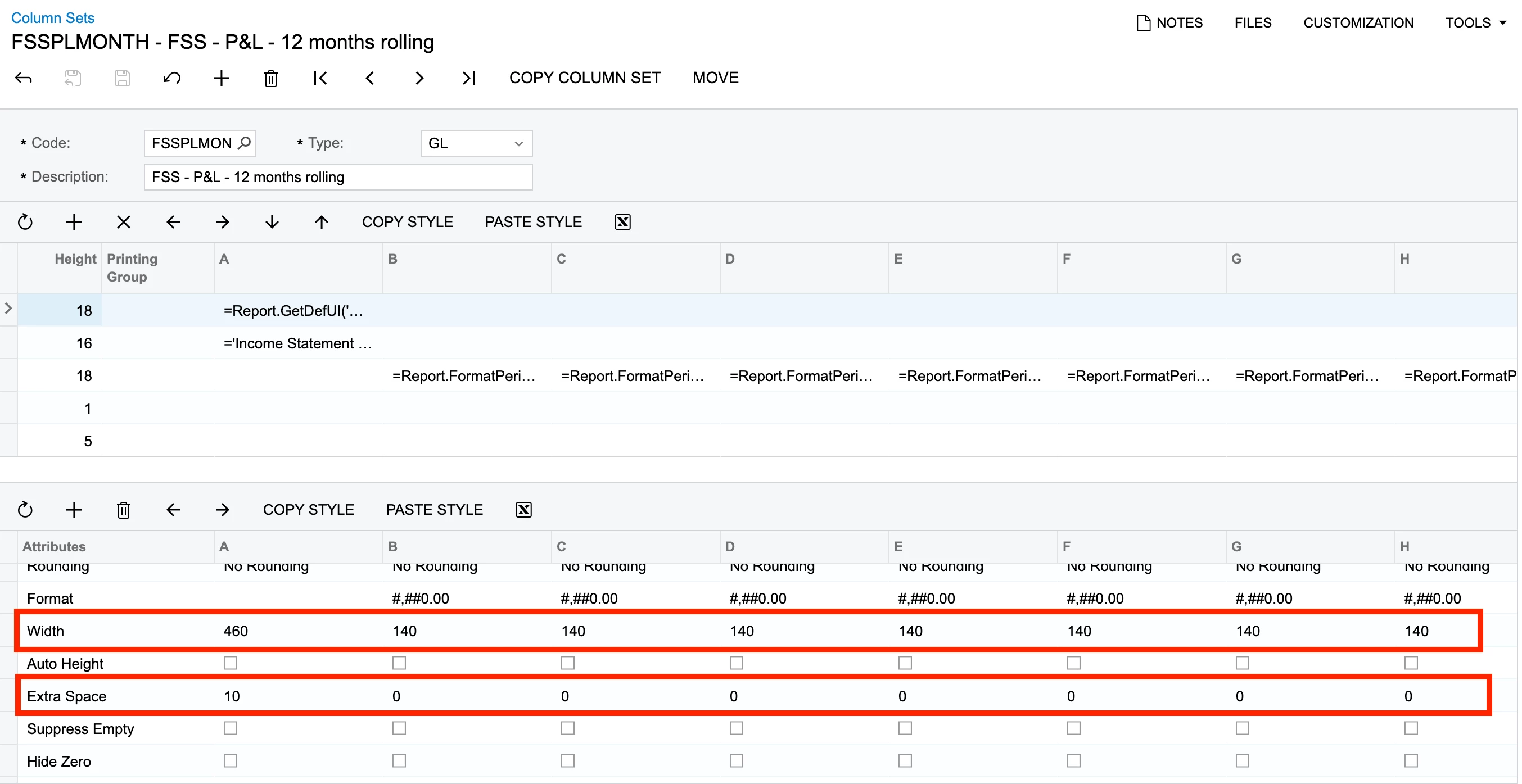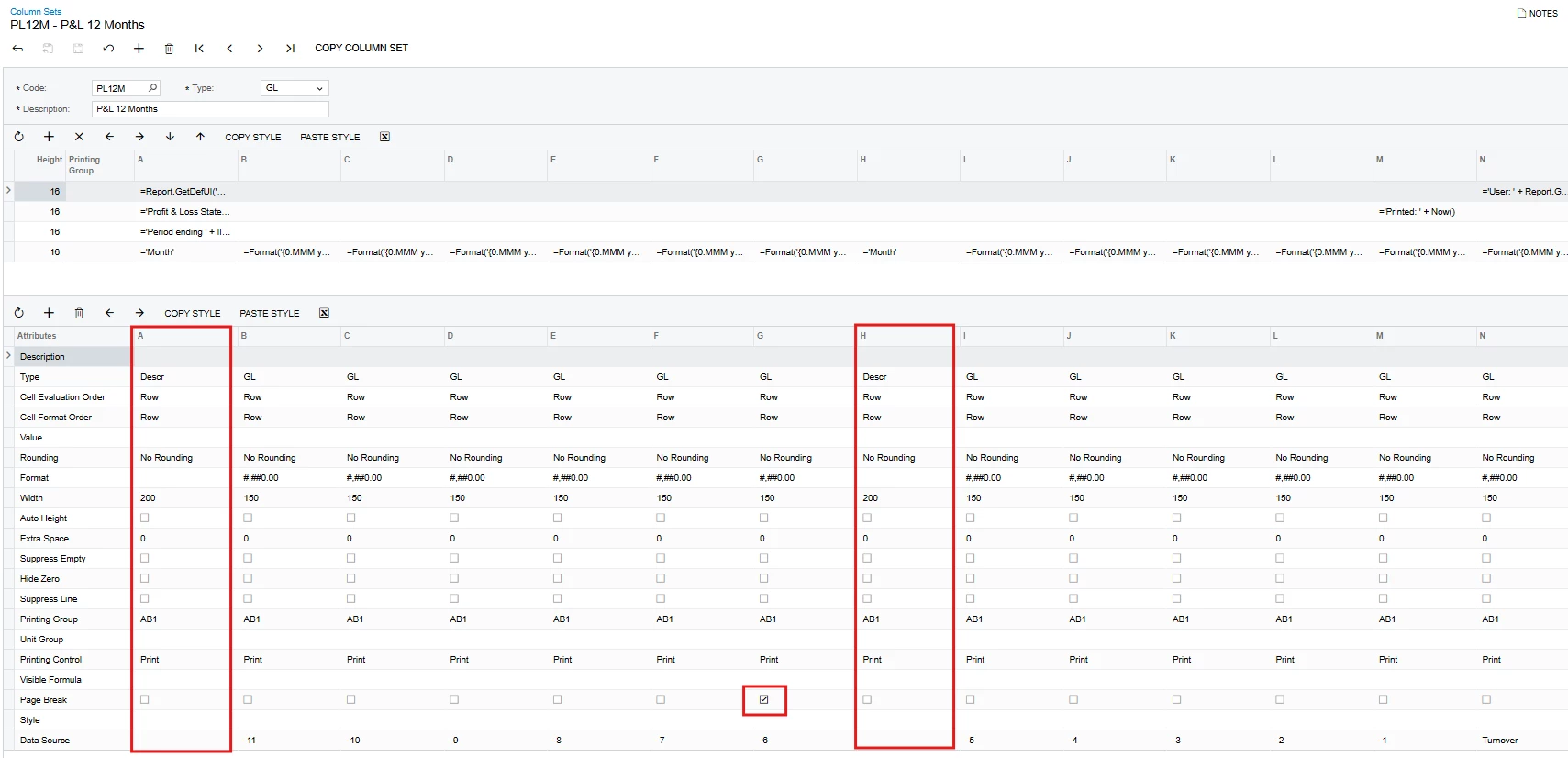 I have created a 12-Month Profit and Loss Report and I want the columns to print on each page of the report.