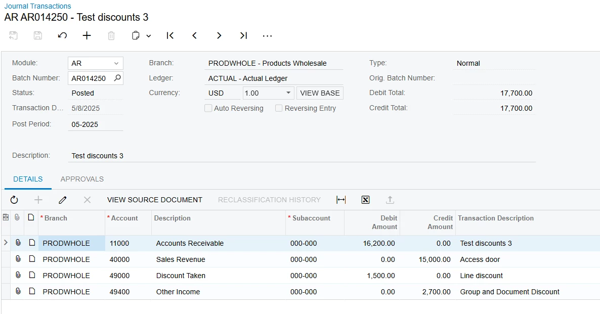 Sales Order discounts posting to the correct GL accounts