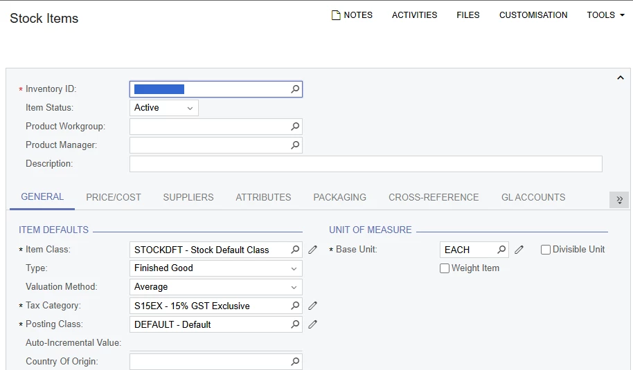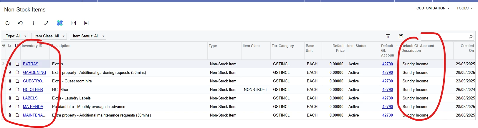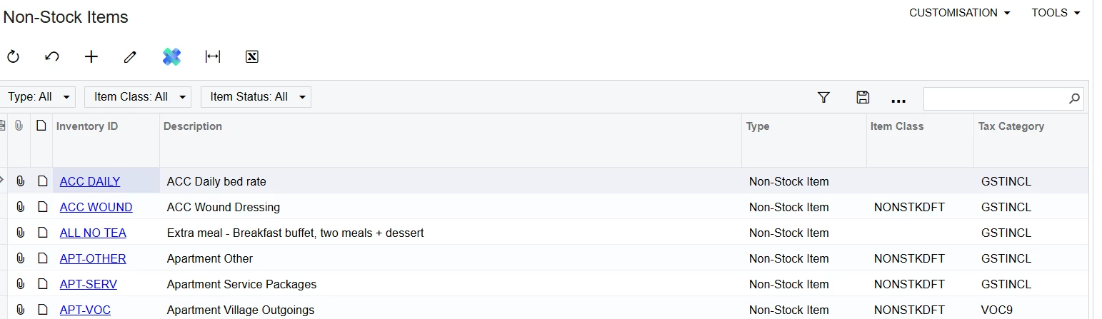 For background, we only have non-stock items, and don’t have any stock items as our business doesn’t deal with inventory.