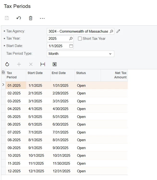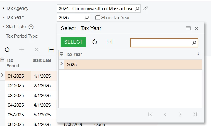 Does anyone know how I can assign more tax years to the tax agency in the Tax Period?