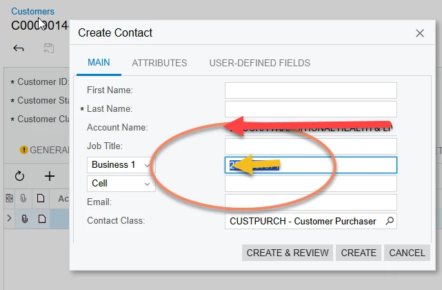 On the customer master general screen (or on the customer contact screen), when I enter the customer contact phone, I get blocked. Specifically, I select the field by either tabbing or clicking on the field and one of our IT admin phone numbers is displayed, but not entered.