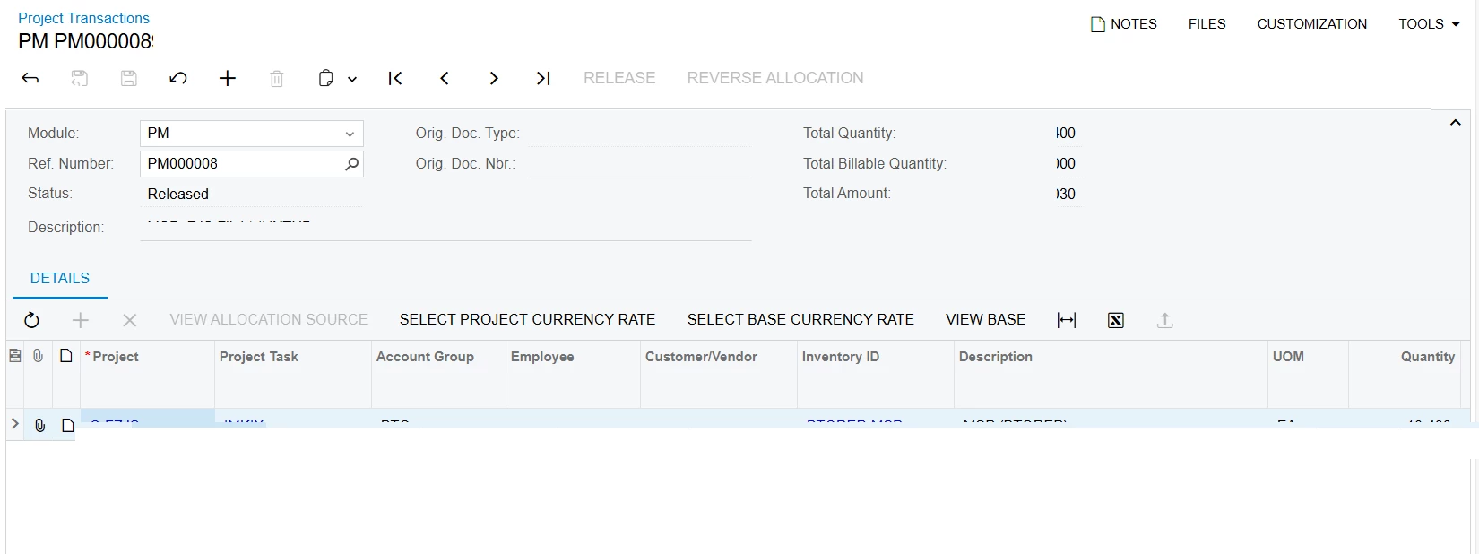 I entered a value incorrectly in the Project transactions and want to nullify this transaction.