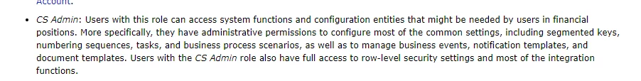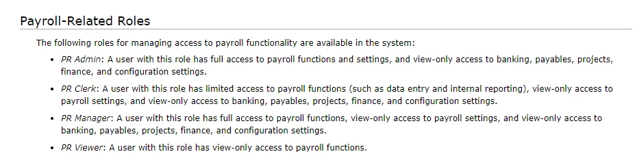Here is a link to the User Roles: Predefine Roles:  https://help.acumatica.com/(W(1))/Help?ScreenId=ShowWiki&pageid=cdd2ae45-630a-4fae-9d7f-3dac7db2c297