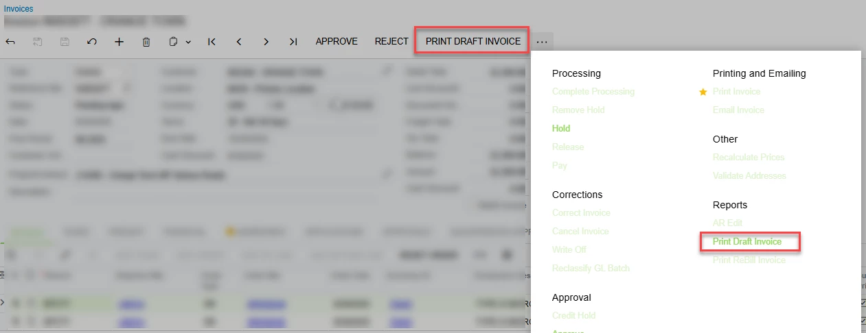 - From the Receivables module, we can print an AR Invoice even if it is pending approval.