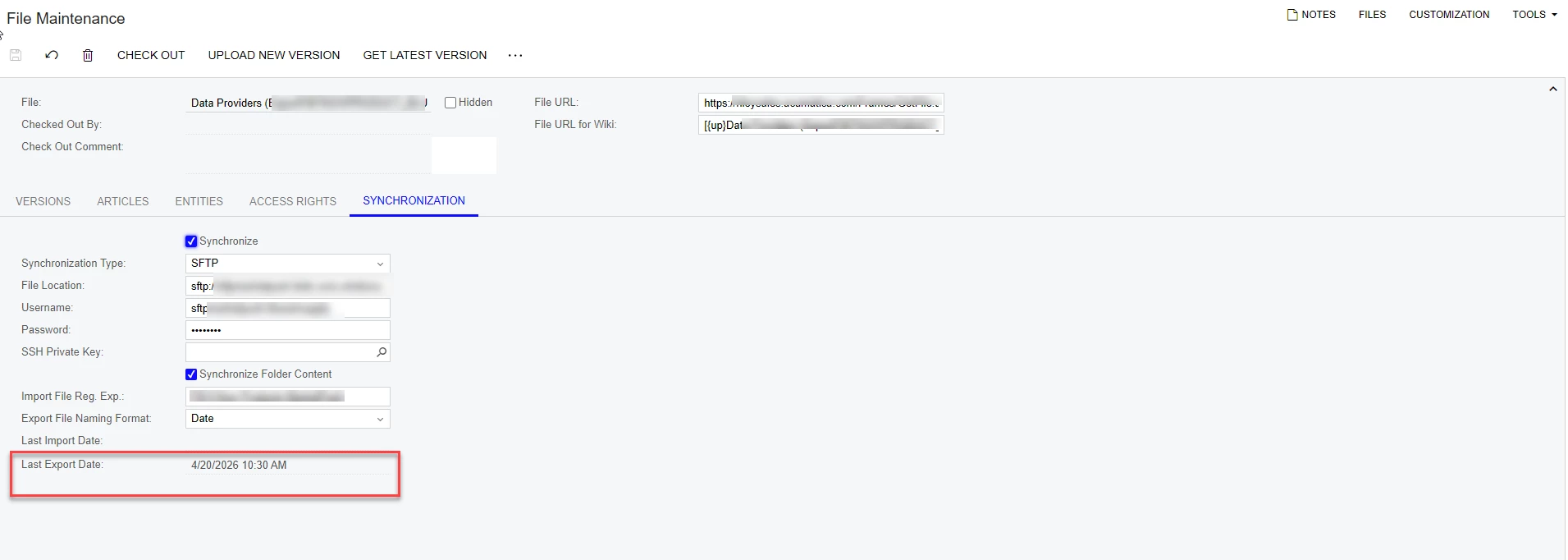 On data provider, enable Synchronization to move exported file required destination folder based on date or file version