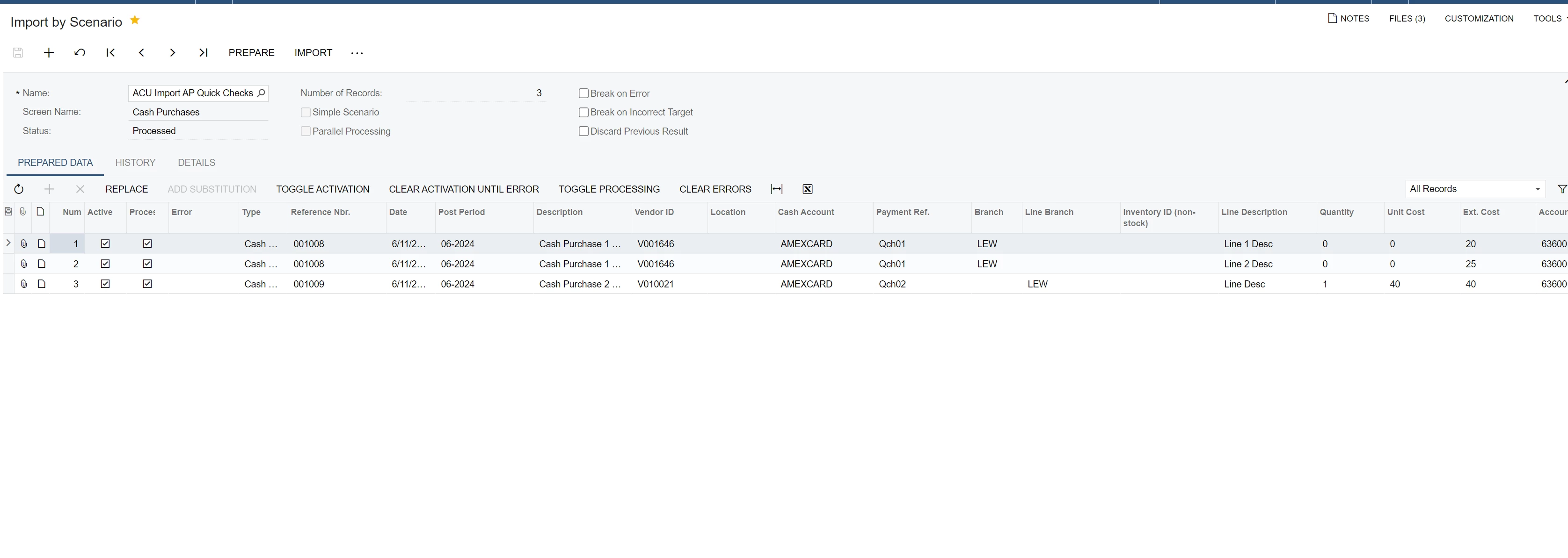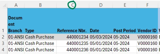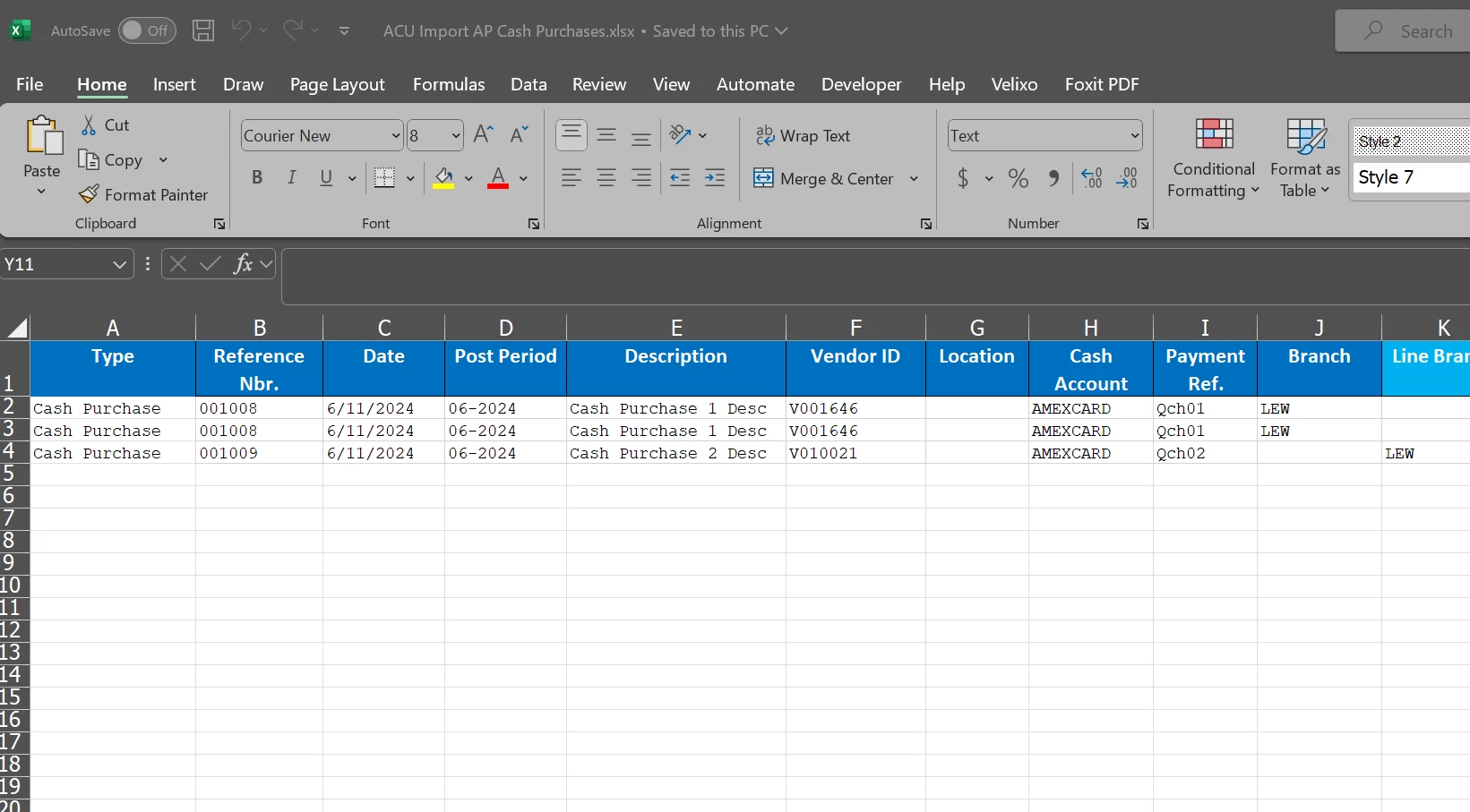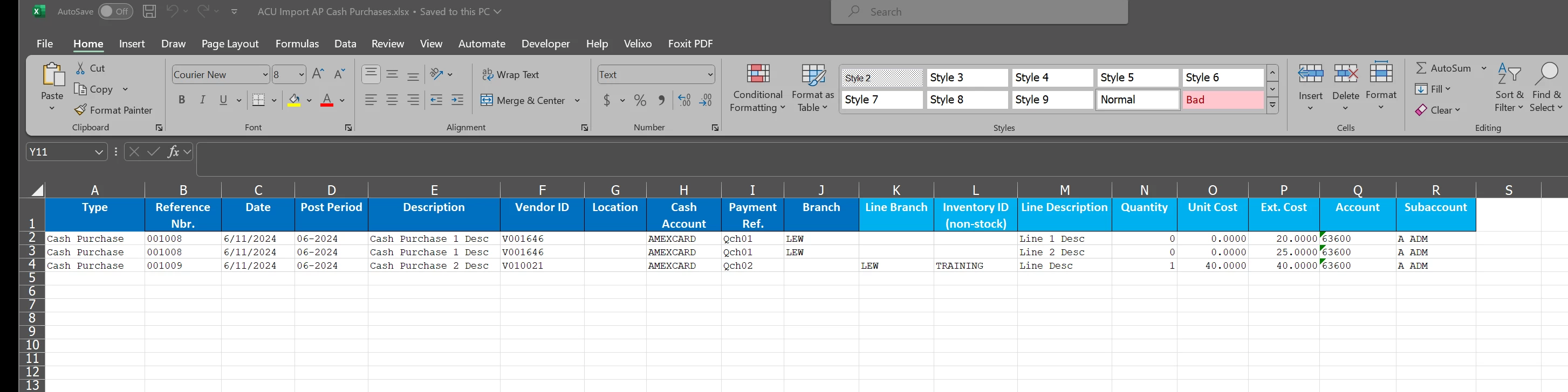 I am trying to import transactions into Cash purchases using the ACU Import AP Cash Purchases Template.