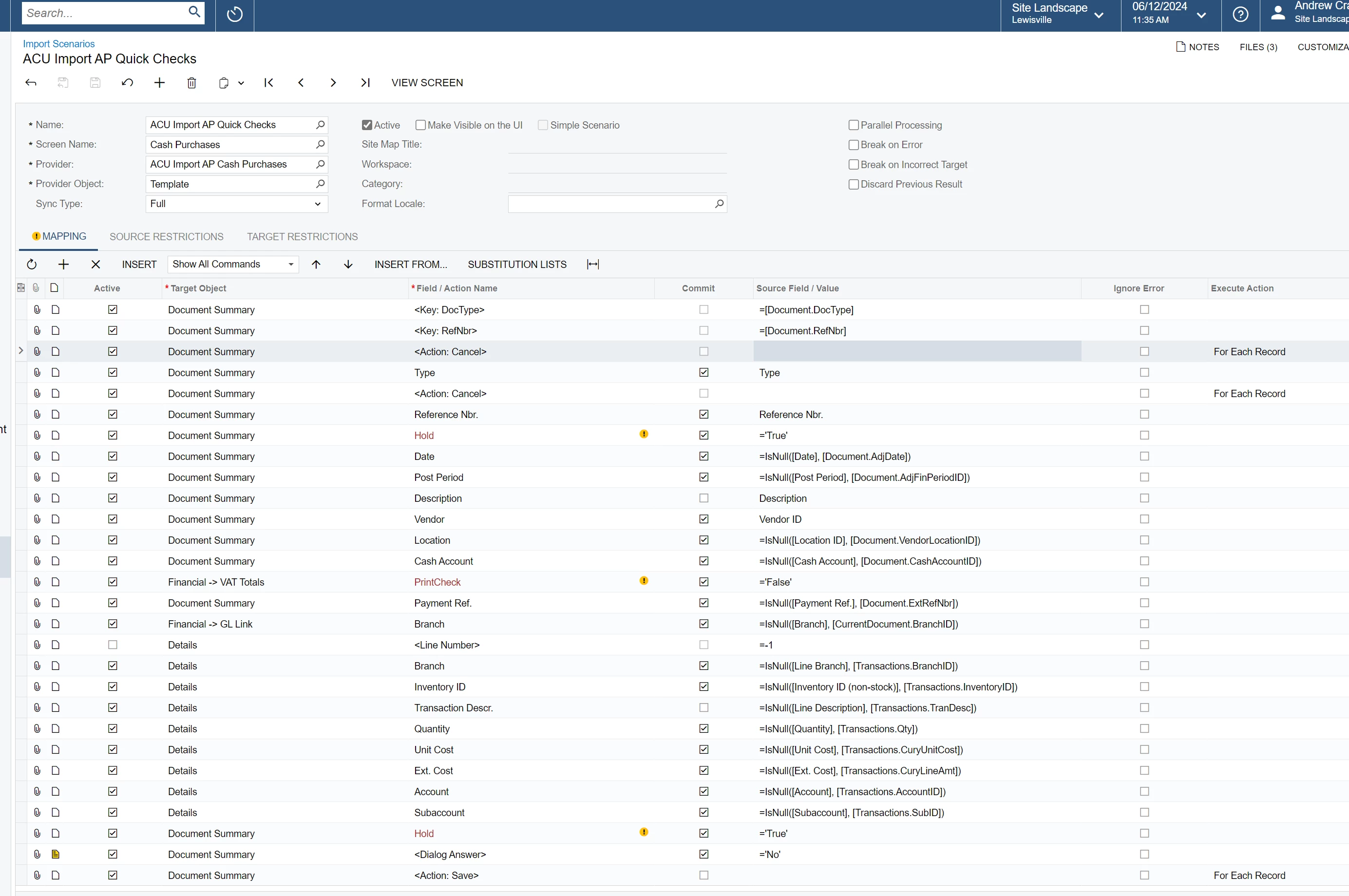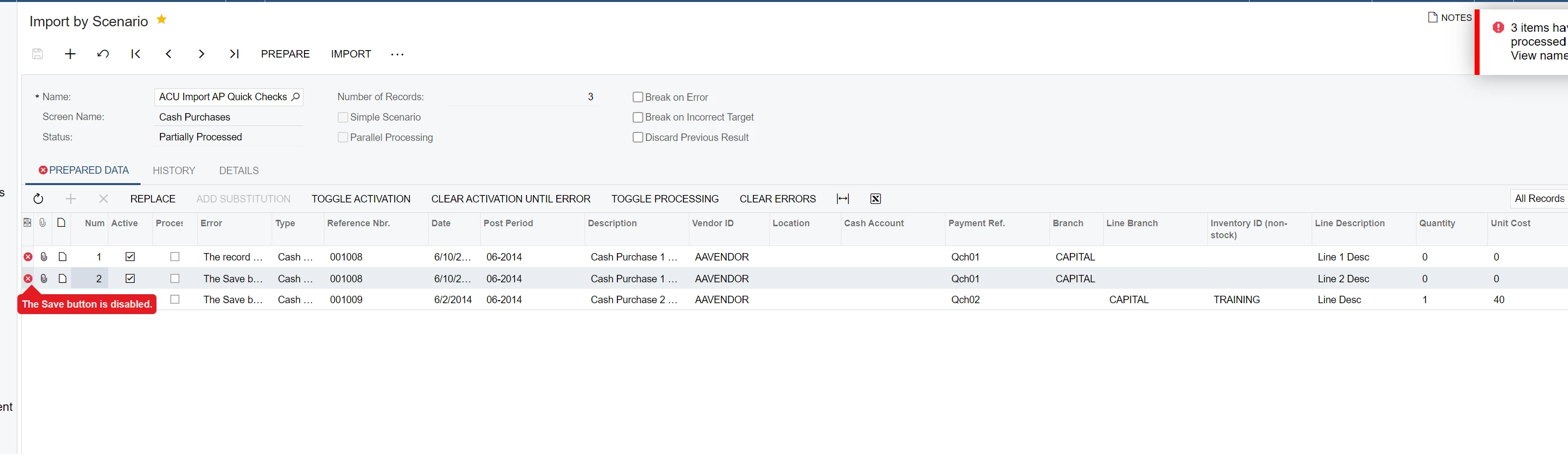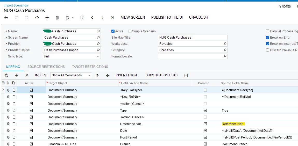I am trying to import transactions into Cash purchases using the ACU Import AP Cash Purchases Template.