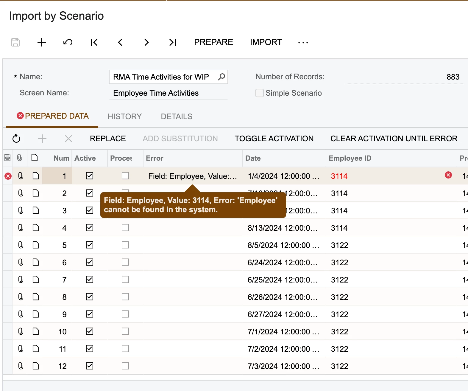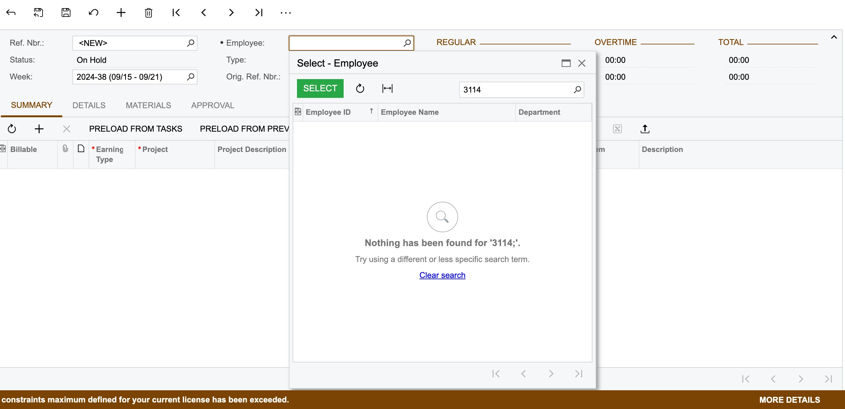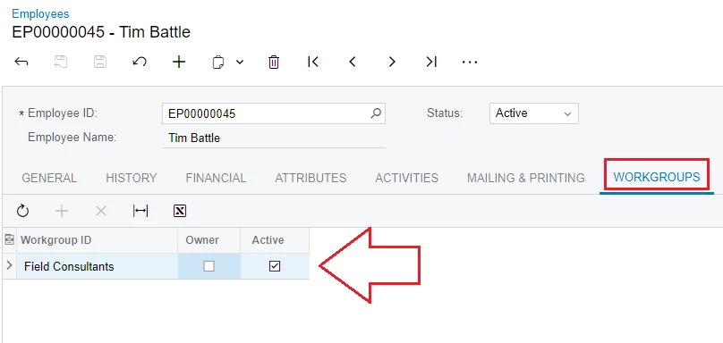 We have the employee record created. But when I try to manually enter a time activity or time card, the employee record doesnt show up