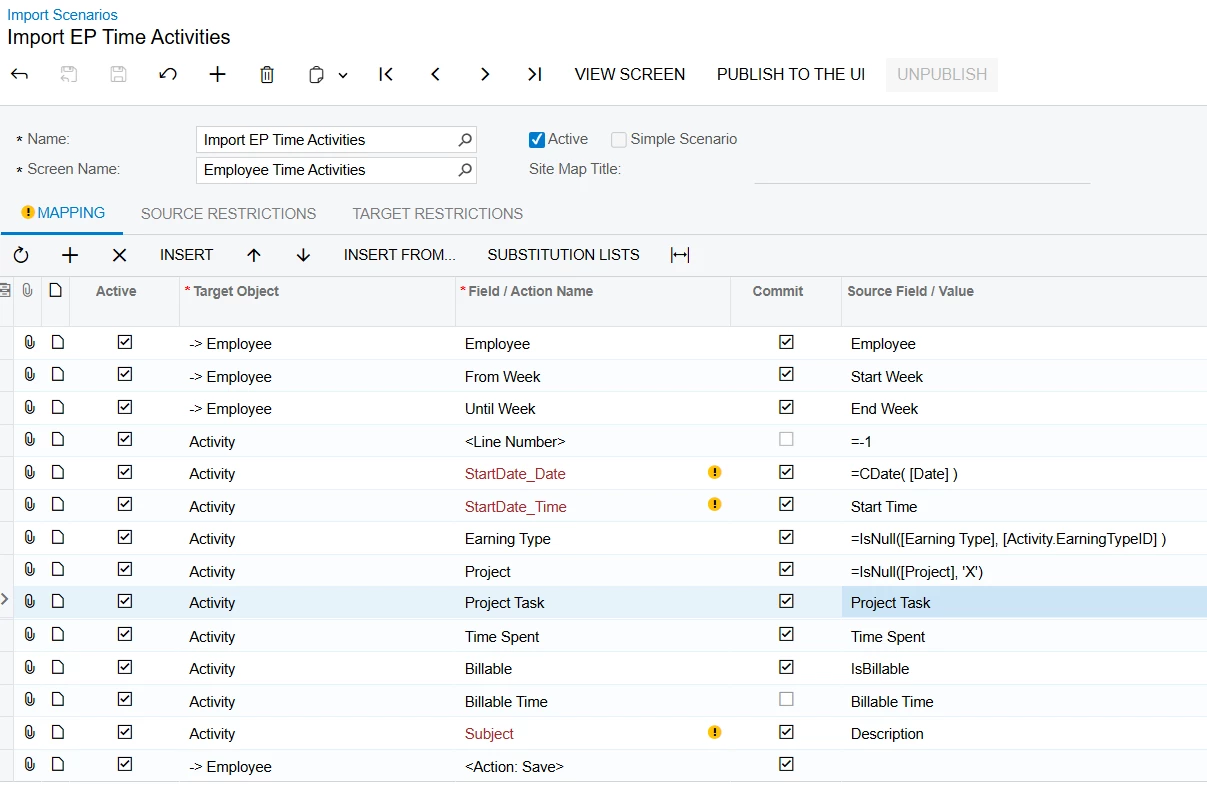 Does your custom screen display data from a standard Acumatica DAC, or is it also a custom DAC? Especially if this is a custom DAC, the field definition in the DAC will impact how the screen and import scenario function. Since your issue relates to a customization, you might want to repost this question on the Develop Customizations forum.
