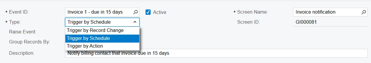 I suspect it’s a business event but none of the actions types seem to fit a specific schedule/time scenario.