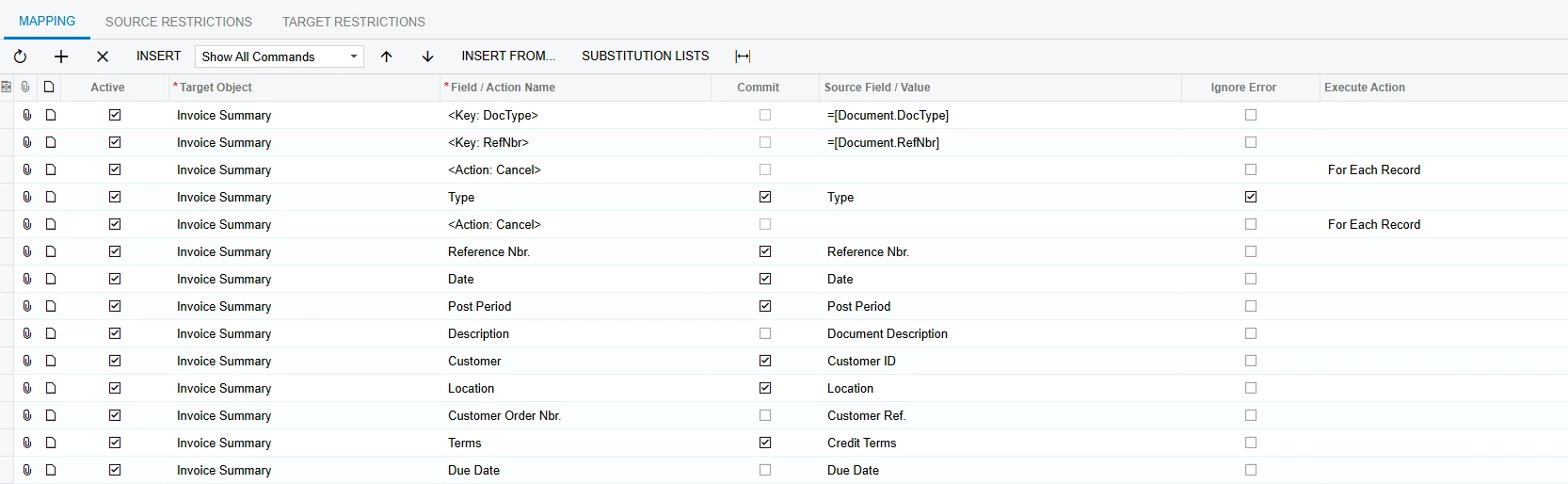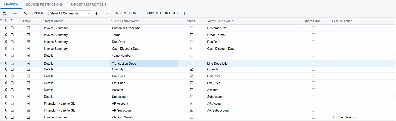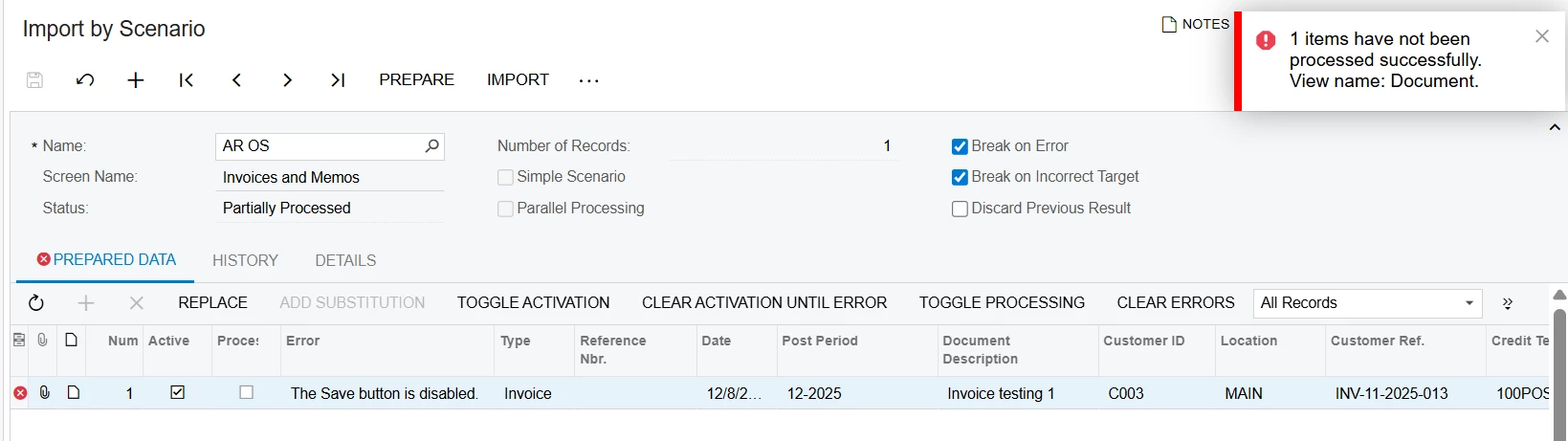 Hi, i want to import the AR Invoice and Memo using Import Scenario, but when i try import there is an error “The Save Button is disabled” i already looked up my mapping but i still don’t get it. Please take a look of my mapping bellow and XML: