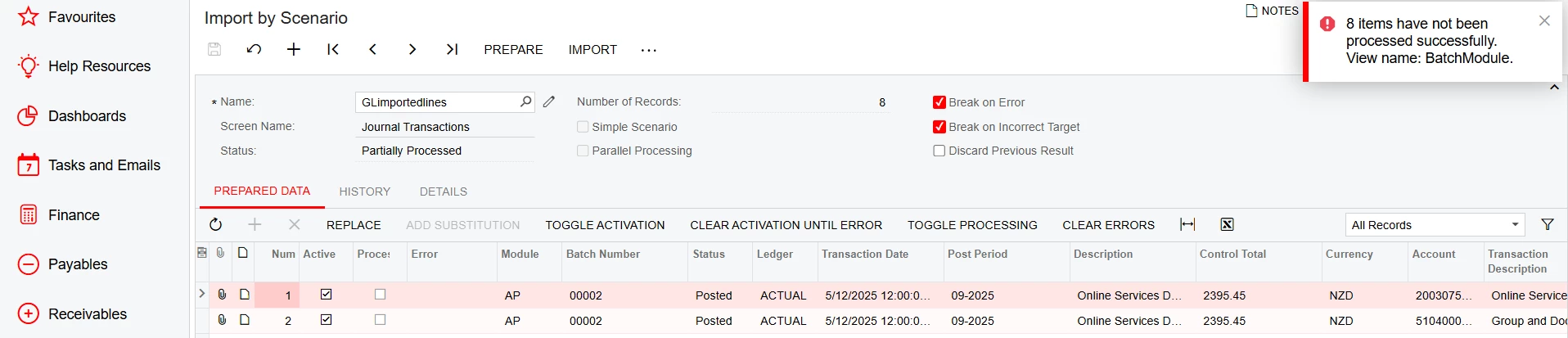 I have a scenario where GL journals have to be exported and imported in another ERP system. after the export we would like to mark these lines as being imported so they can be obvious on a GI. I can’t work out how to get the import scenario work using the same key module, batchnumber and line numbers.