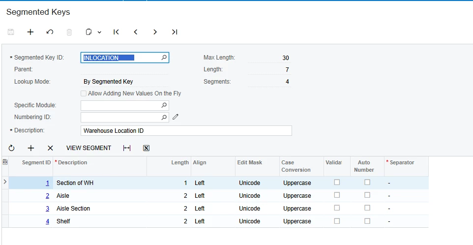 Our warehouse locations have 4 segments (1 char, 2 char, 2 char, 2 char)