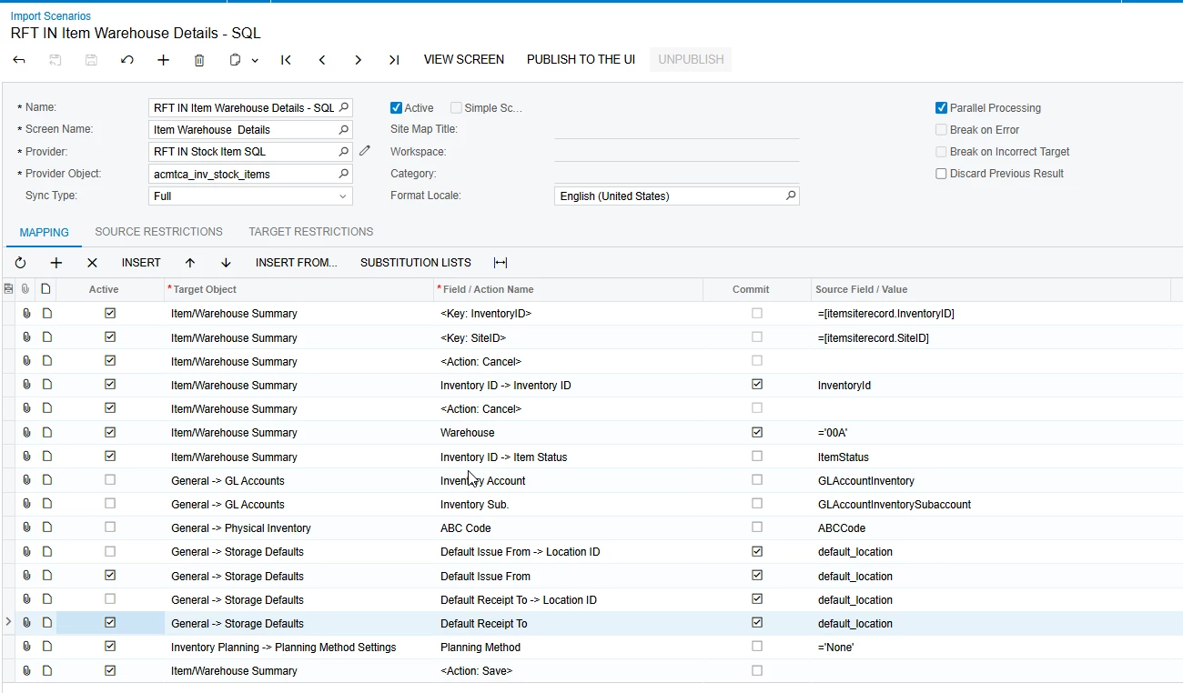 Here is my superficially simple question. For an import scenario that I have with the Item Warehouse Details screen, IN204500, I am getting this error: