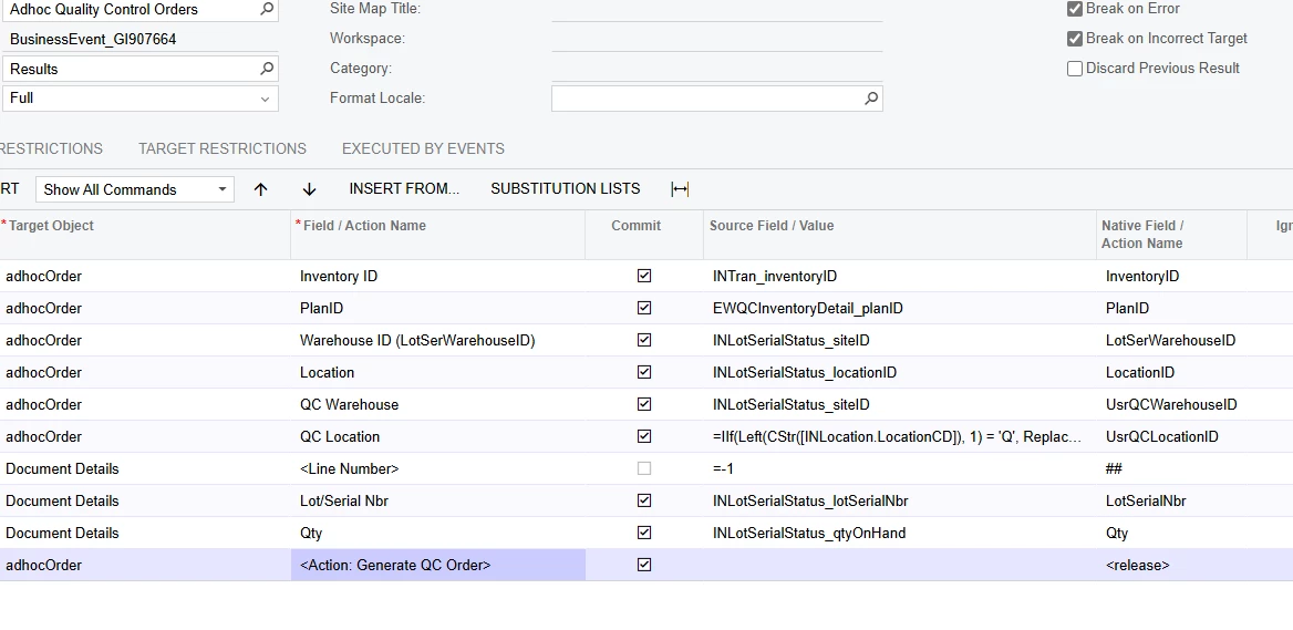 Using the QMS module, I want to create an ADHOC QC Order automatically, but my import scenario is getting an error that the Location ID is null.