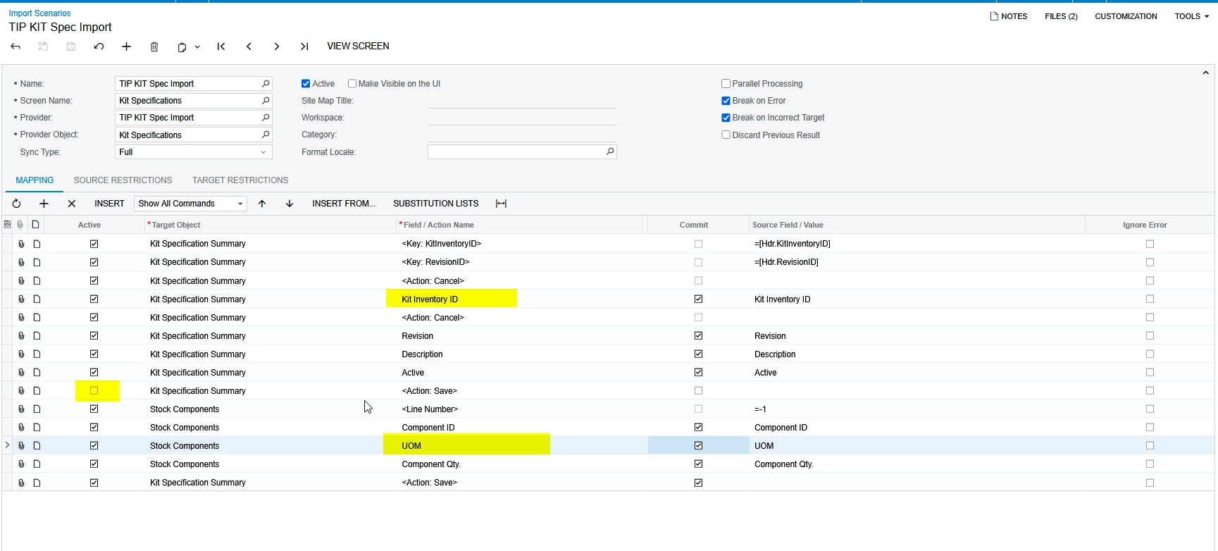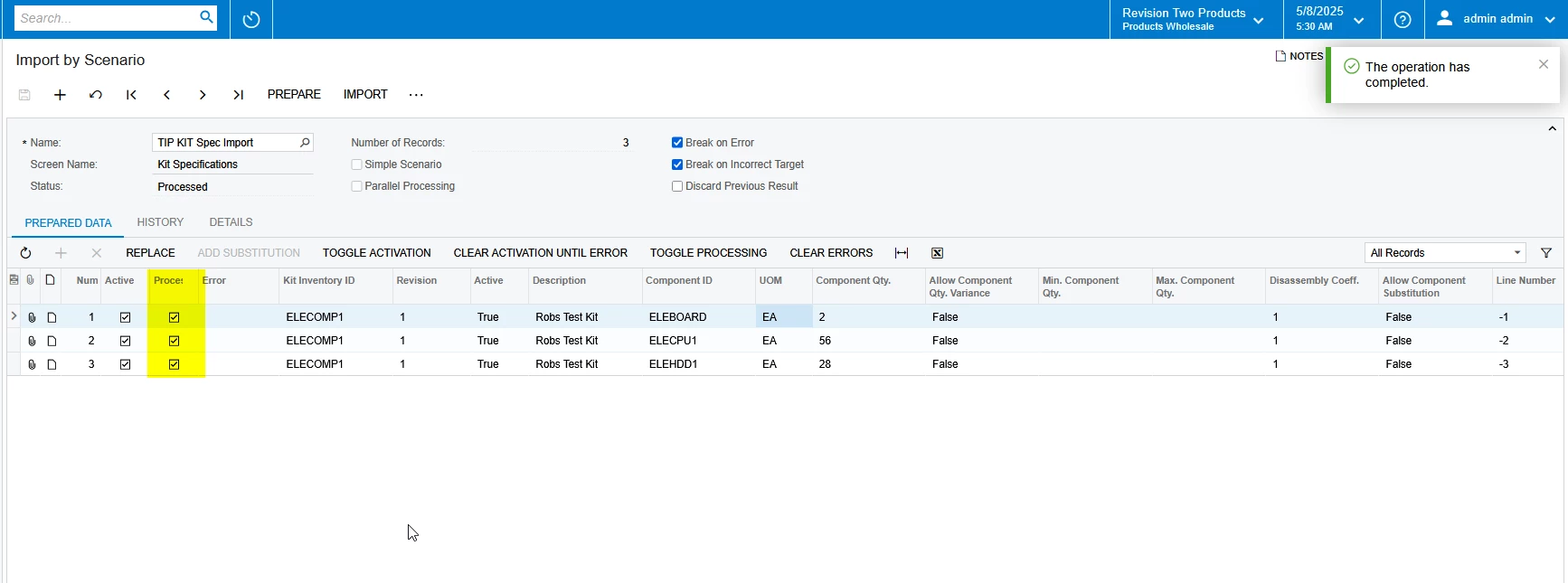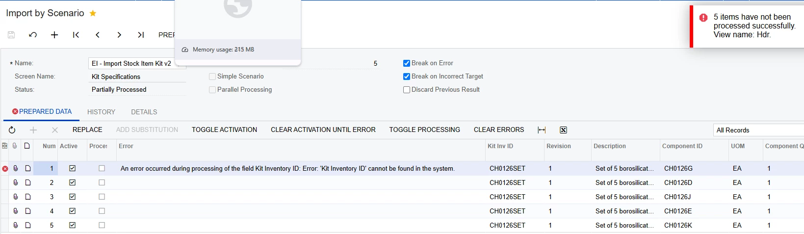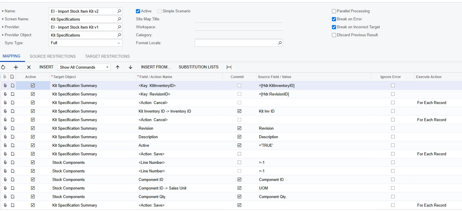 I followed a couple of posts on Kit Specifications, this is working except for the first line selects a random item, then the following lines are correct. Appreciate it if someone could show me what is wrong with this import.