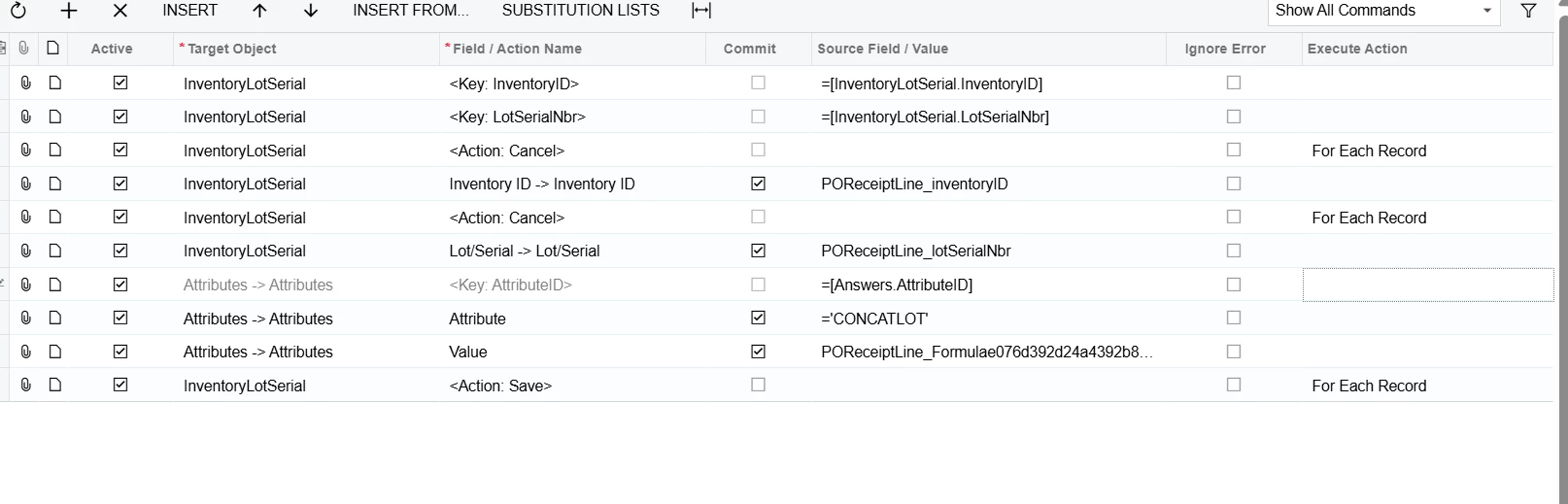 The equation: “=IIf( [POReceiptLine.PONbr]=Null, Concat(CStr(Left( [POReceiptLine.VendorID_Segment1],7 )),'-',CStr([POReceiptLine.ReceiptNbr]),'-',CStr([POReceiptLine.LotSerialNbr])), Concat(CStr(Left( [POReceiptLine.VendorID_Segment1],7 )),'-',CStr([POReceiptLine.PONbr]),'-',CStr([POReceiptLine.LotSerialNbr])) )”
