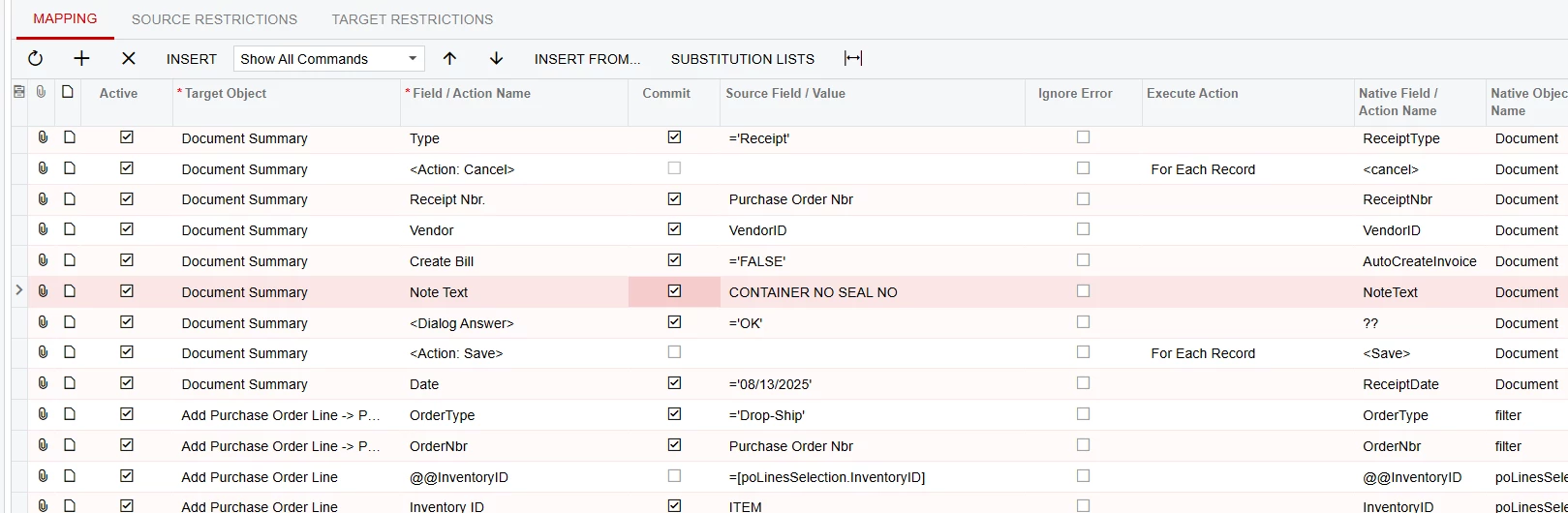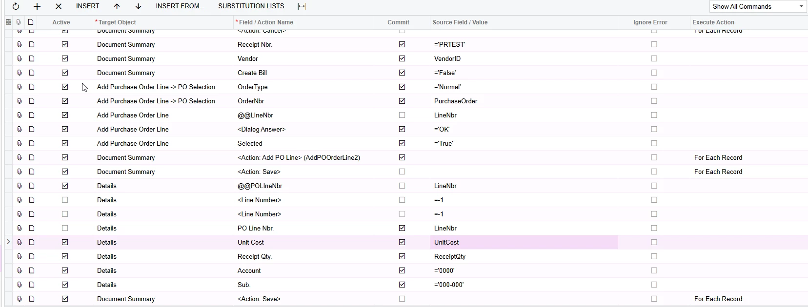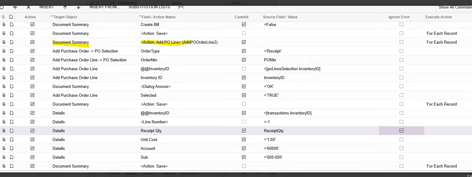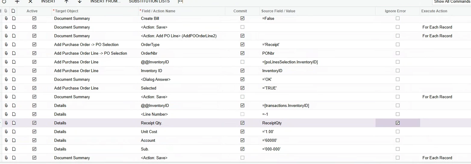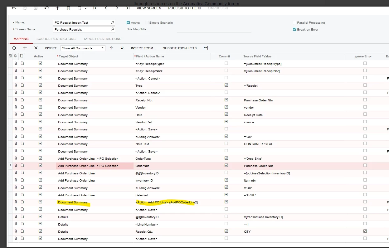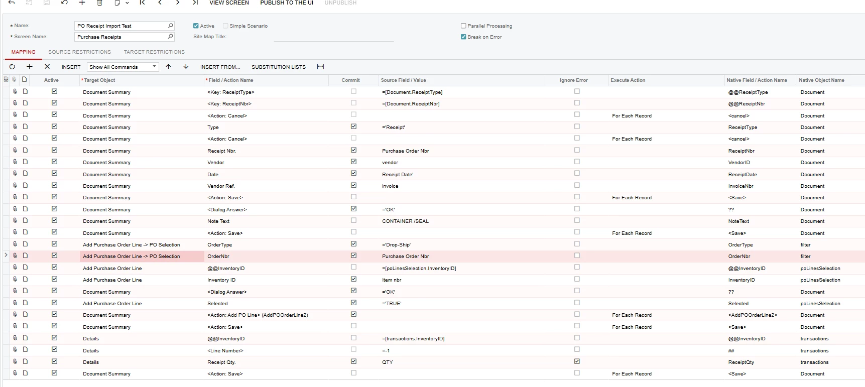 I’m creating an Import Scenario for the Purchase Request screen (PO.30.20.00).