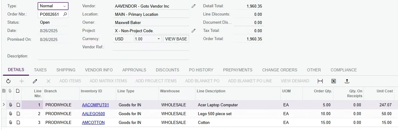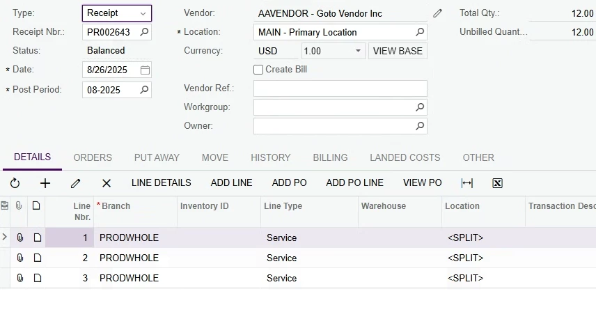 I’m having difficulty adding an individual PO line (other than the first PO line) using the ADD PO LINE button (found under the DETAILS tab).