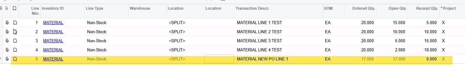 How do I add a PO line other than the first one?