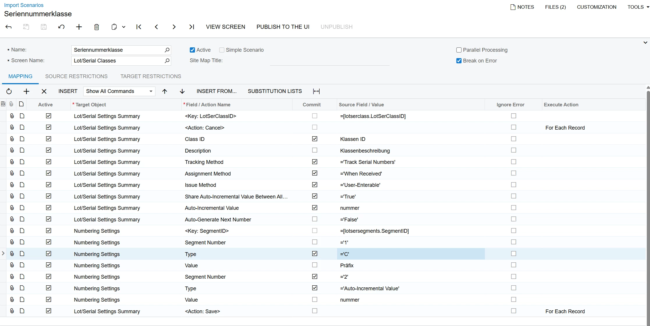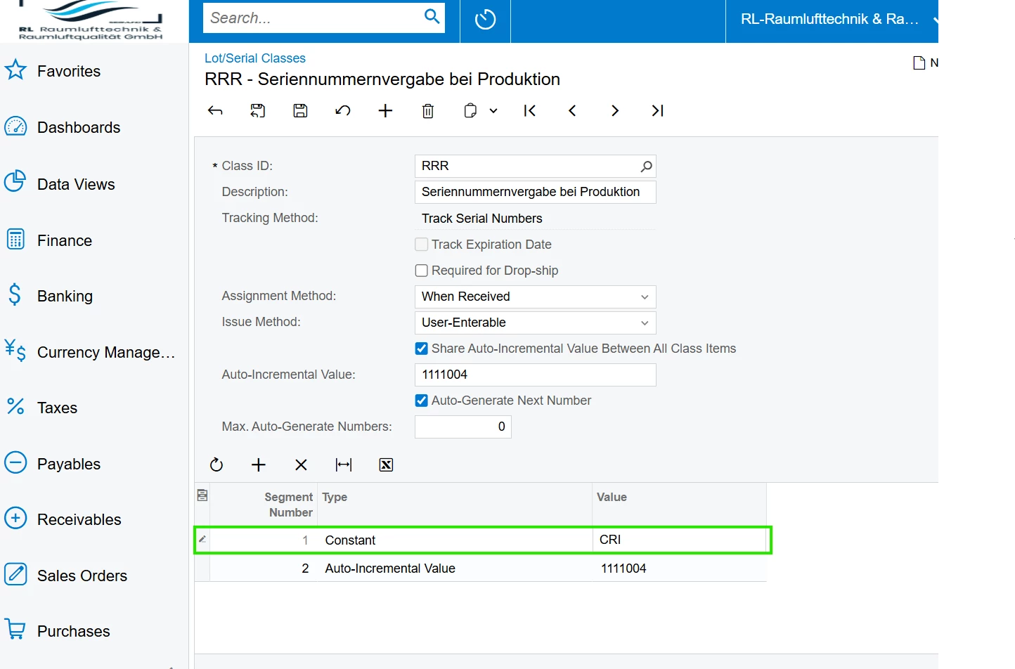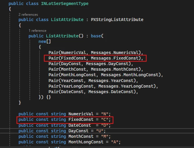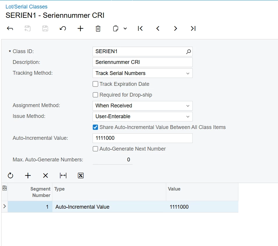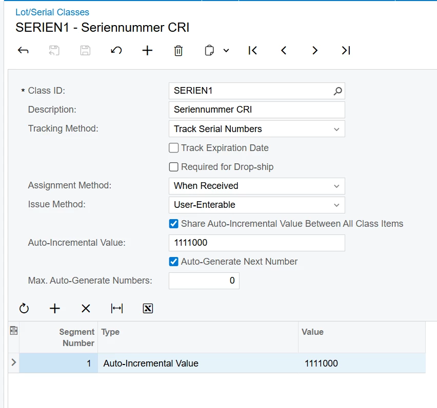 I was able to create Lot/Serial classes with the Constant Segment type successfully