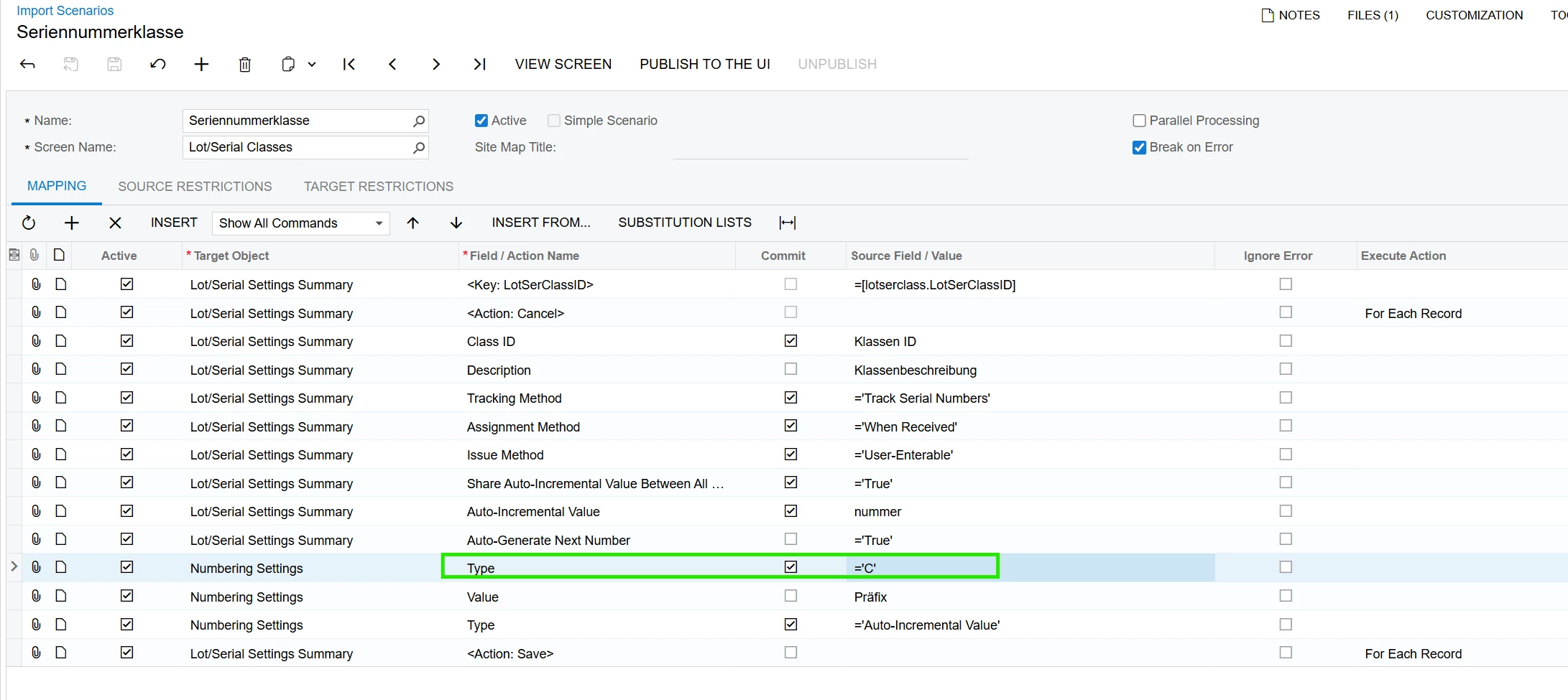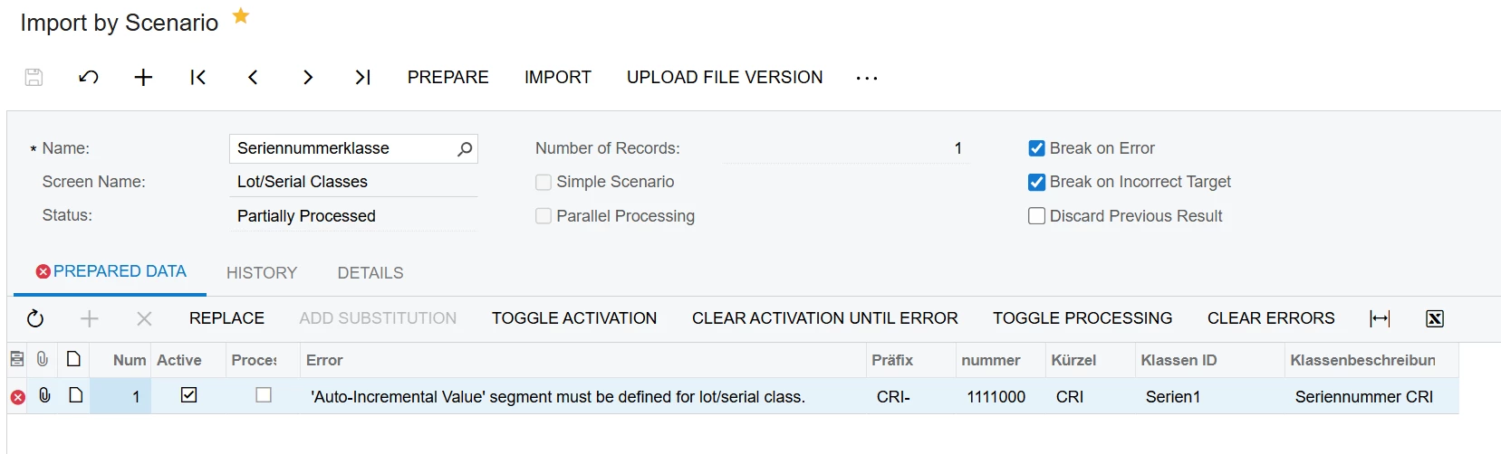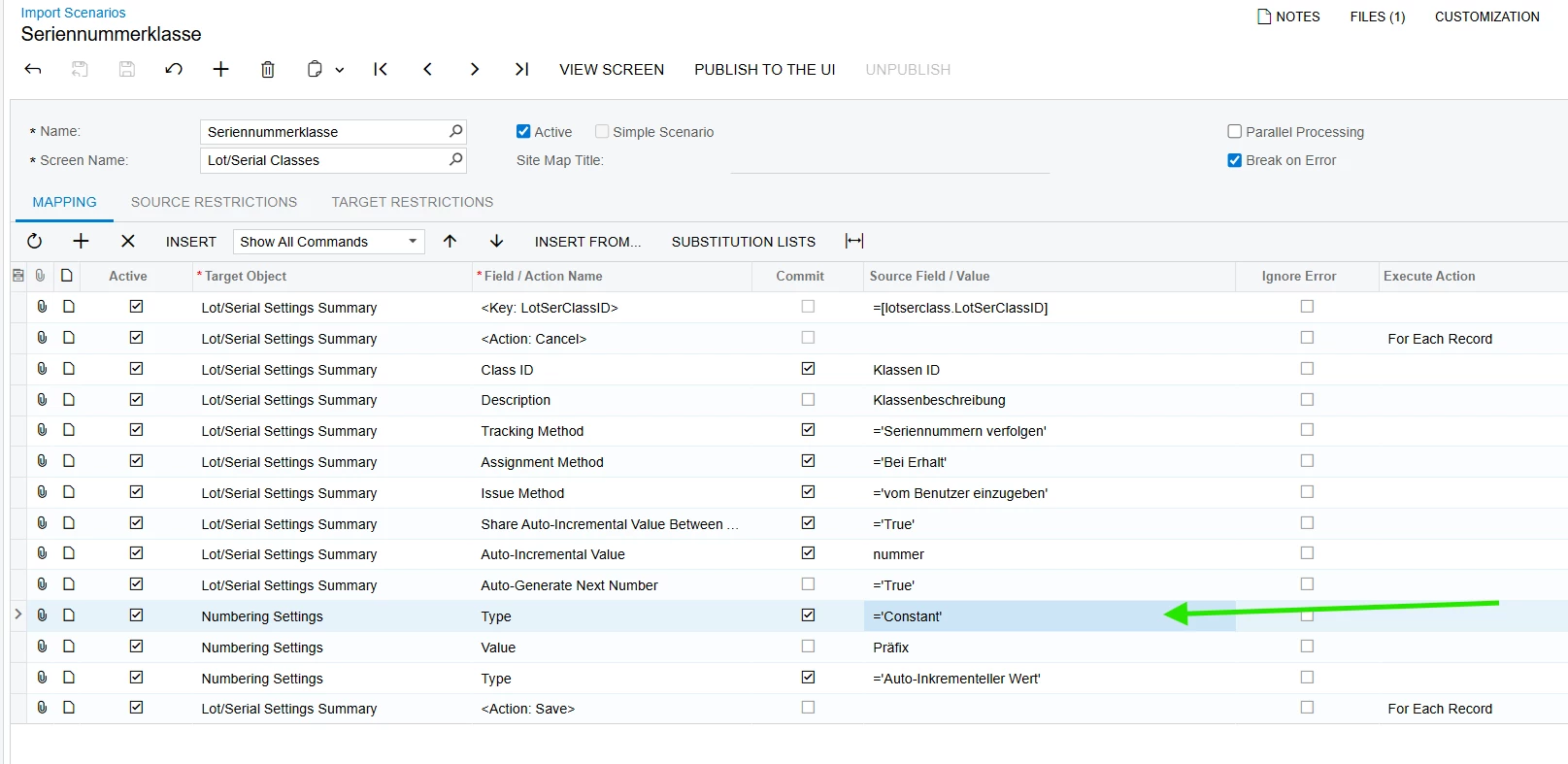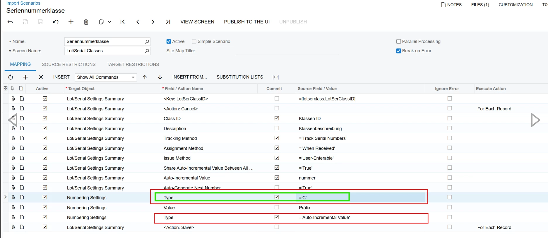 I was able to create Lot/Serial classes with the Constant Segment type successfully