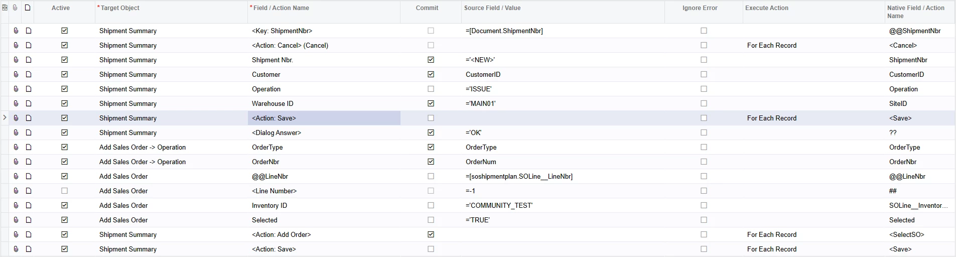 While I never got your process to work using the line number (I used the Inventory ID to get something to populate), I was able to find a work-around for the error. Adding an extra save to let Acumatica finish doing all the shipment setup before adding the SO has worked for my testing.
