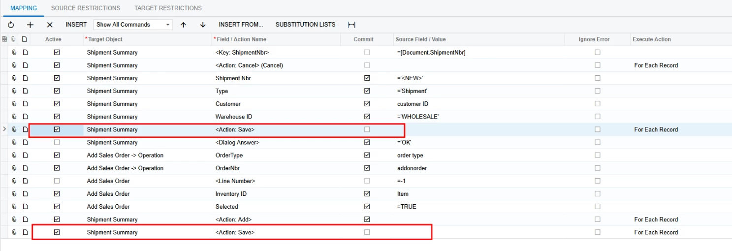 “Another process has added the 'SOShipmentCarrierData' record. Your changes will be lost.” The Add Order function works in the UI but I have tried everything to get an import scenario to work to no avail. Here is what my current scenario looks like: