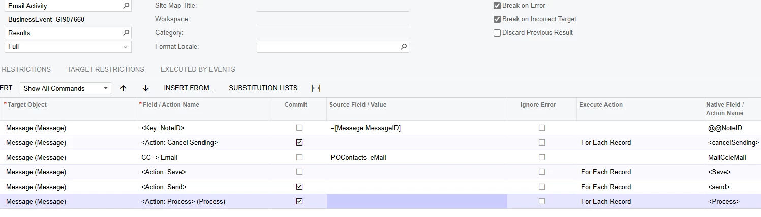 My plan is currently to have one Business Event monitoring a GI for when items meet the conditions for cancelation. That event triggers one scenario to cancel the line and another scenario (this) to add the SO information to an email; We would like to cancel SO lines ASAP but not send out more than one email a week.At the end of the week a scheduled event will add some templated text and send any drafts that have been building up during the week.