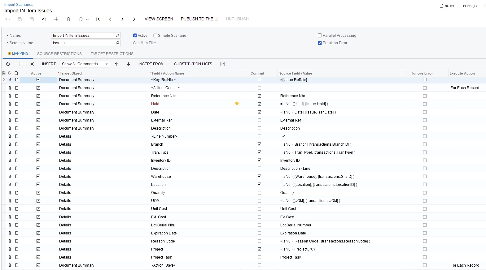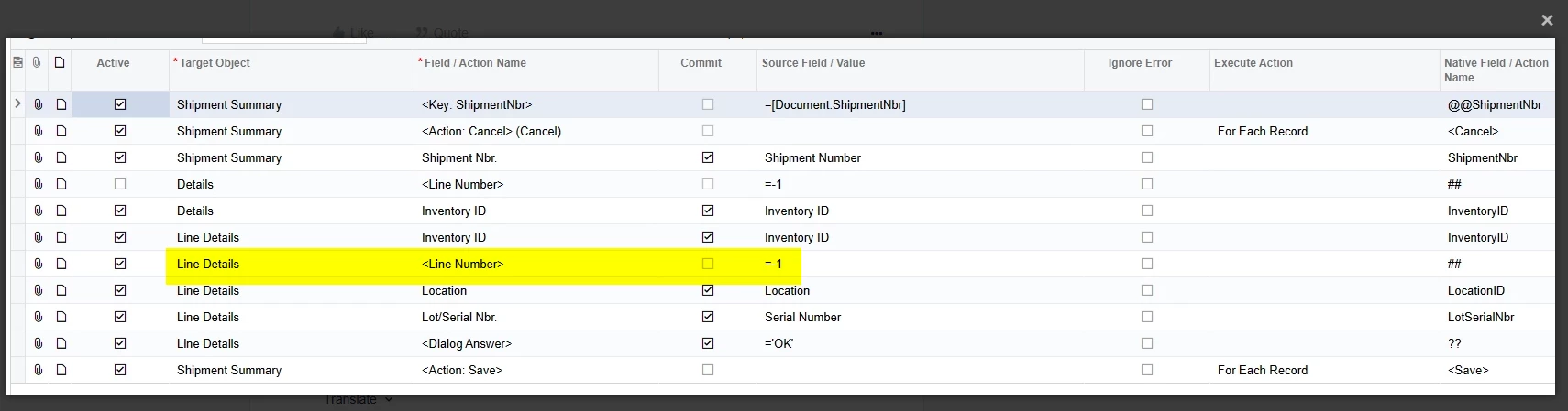 I have a Business Event that will create IN Issue documents when an IN Transfer is released, but I’m having trouble getting the Lot/Serial Nbrs from the Transfer’s Line Details included in the Line Details of the IN Issue.