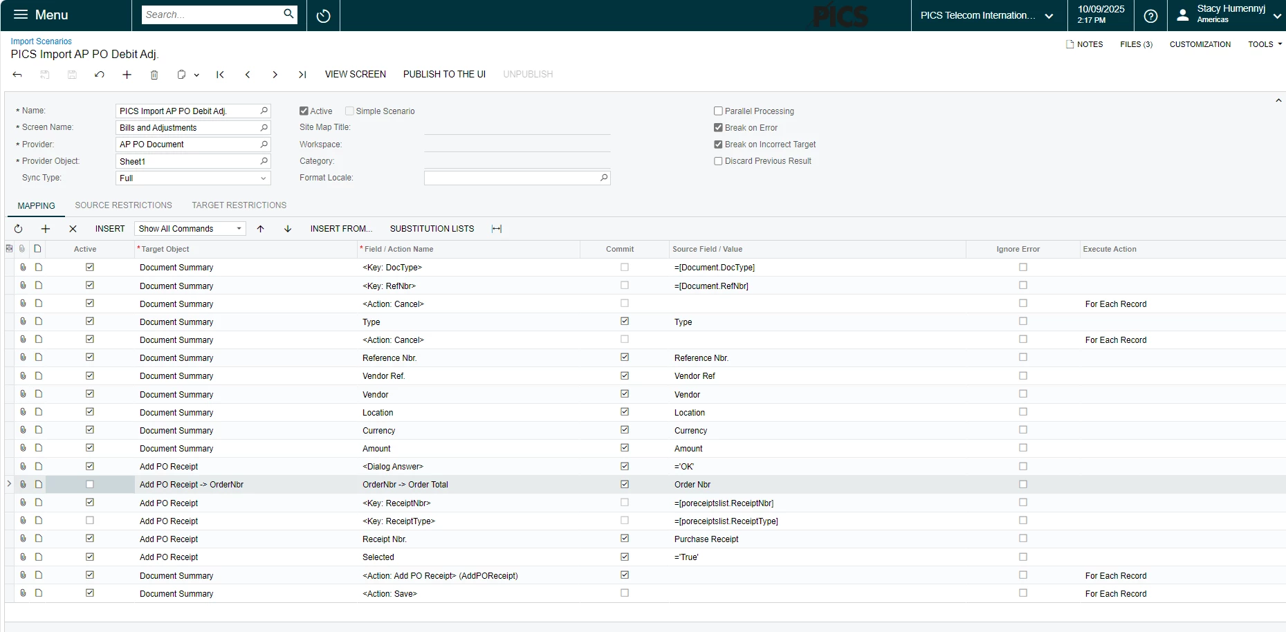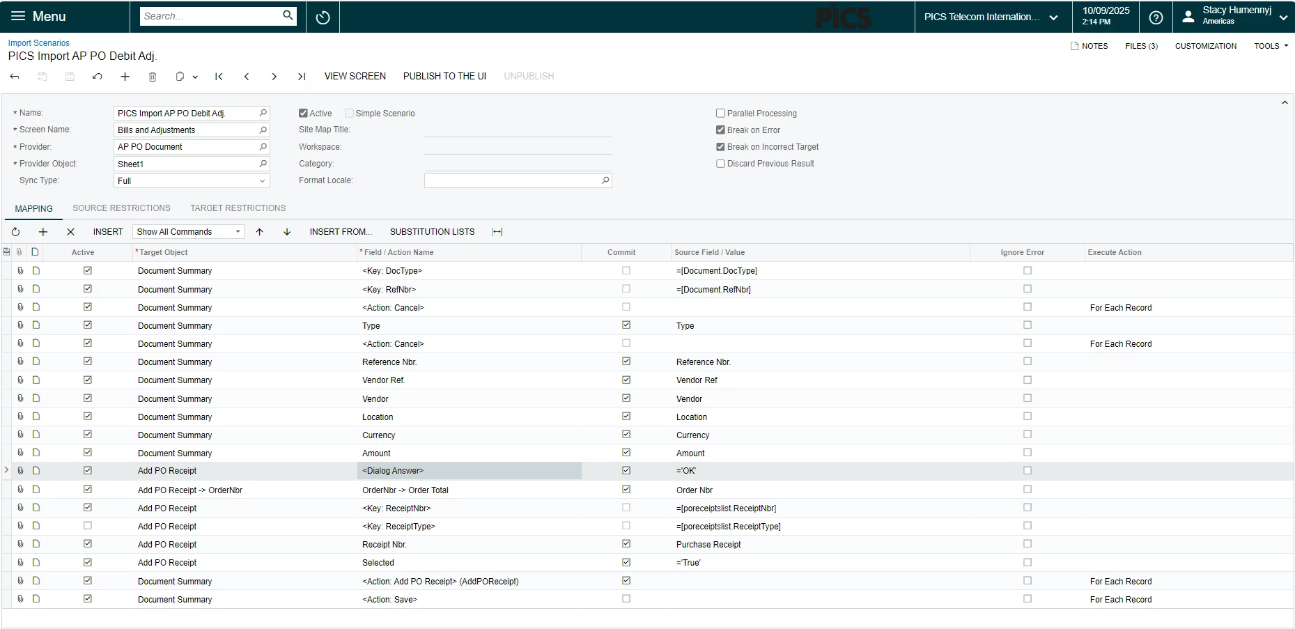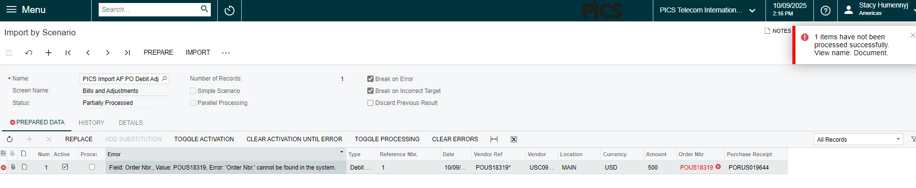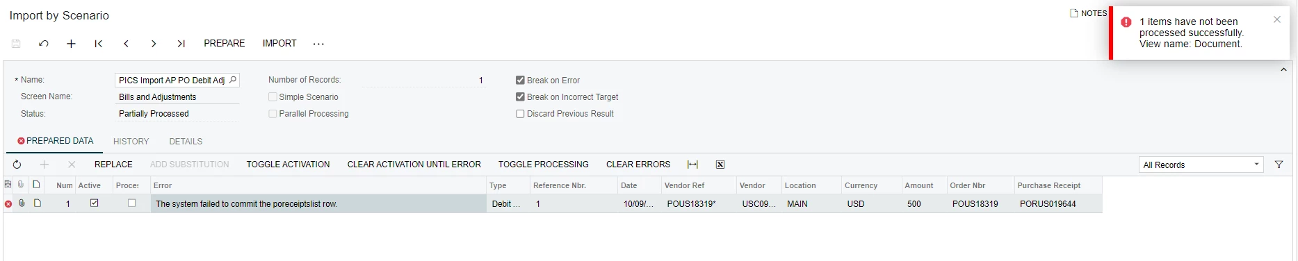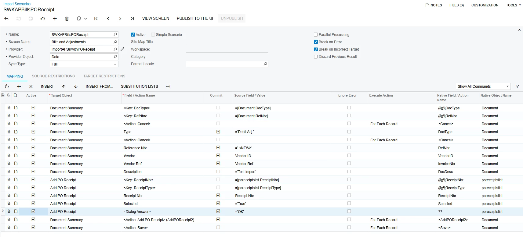 I am trying to import AP bills. The AP Bills are tied to a PO Receipt.