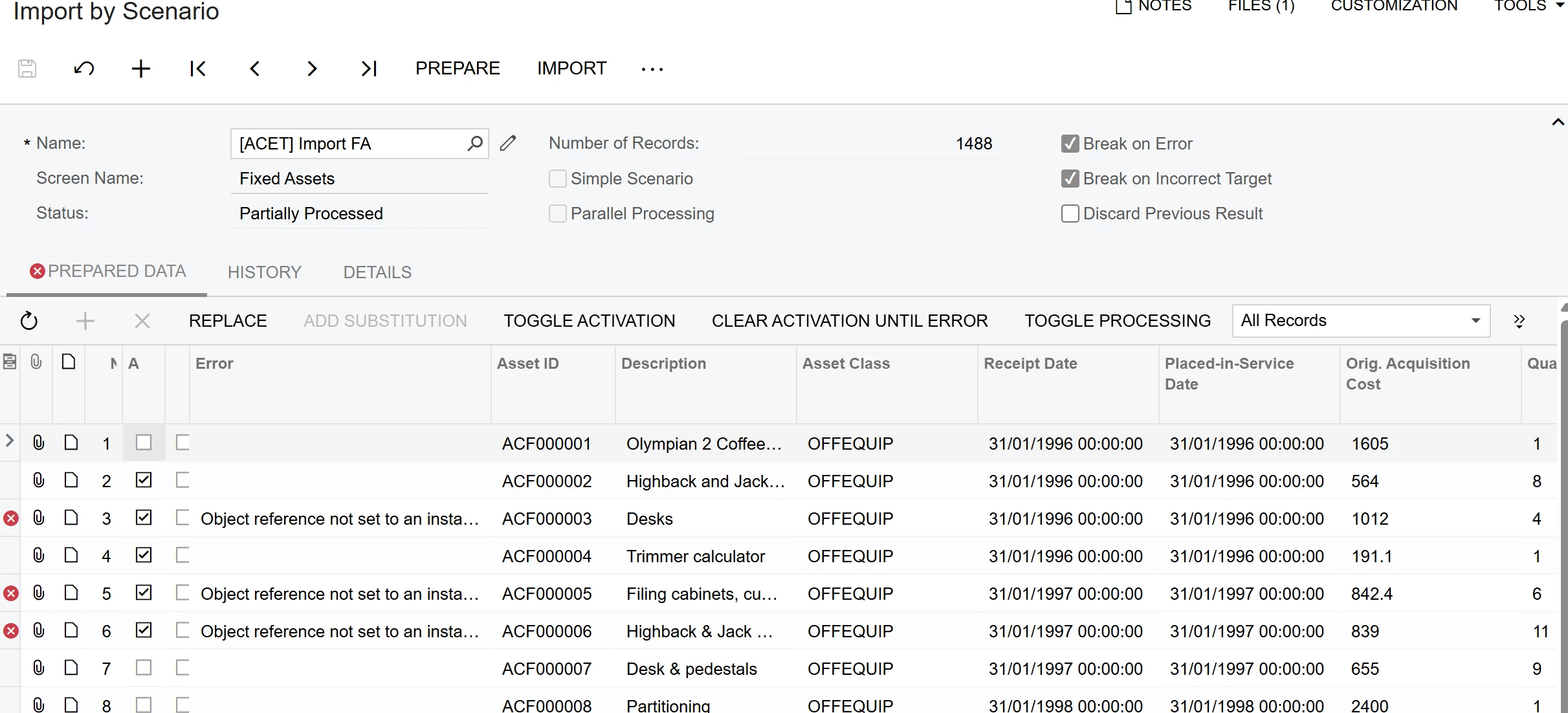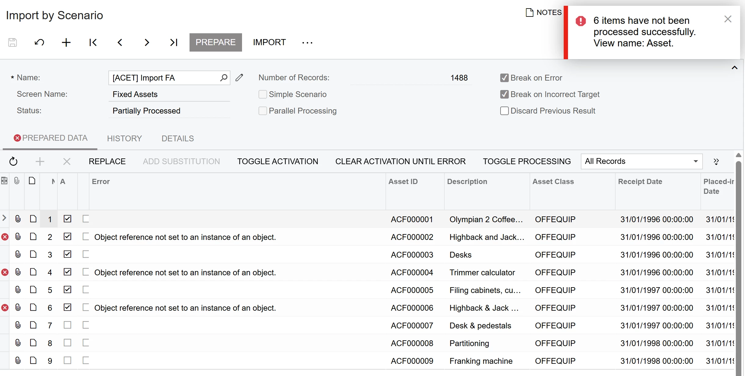 I am trying to import assets into a new system, I am running 25.1 Build 25.101.0153.4